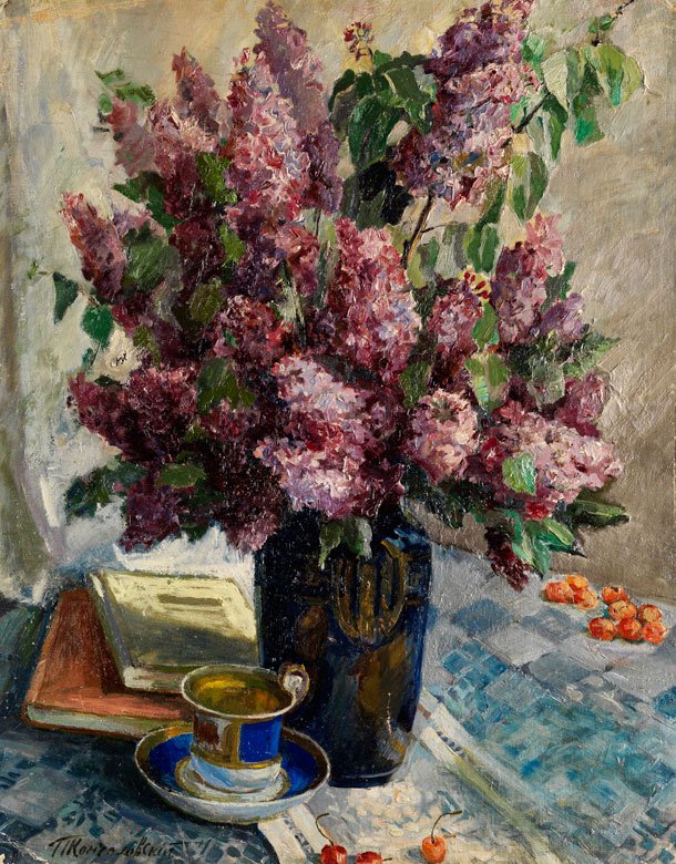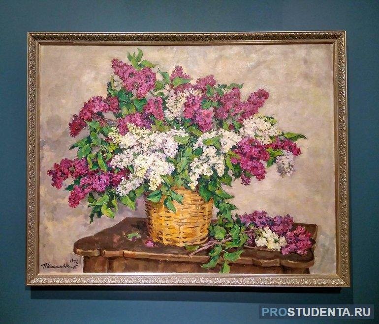 Натюрморт "Сирень" - произведение художника Кончаловского, которое восхищает своей красотой и нежностью. В этой картине мастер сумел передать всю прелесть и очарование цветущих сиреневых веточек. Он создал настроение изысканности и романтики, воплощая на холсте богатство фиолетовых оттенков, которые плавно переходят в легкие розовые тона. Благодаря умелому использованию света и тени, каждый цветок находится в прекрасном гармоничном сочетании с остальными элементами натюрморта. Это произведение идеально подойдет для интерьера, добавив в него роскошь и элегантность. Натюрморт "Сирень" - настоящее воплощение красоты природы и великолепное творение искусства.