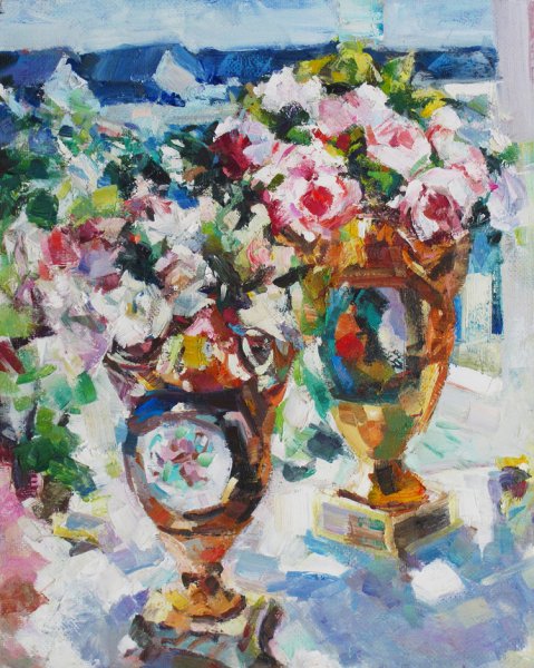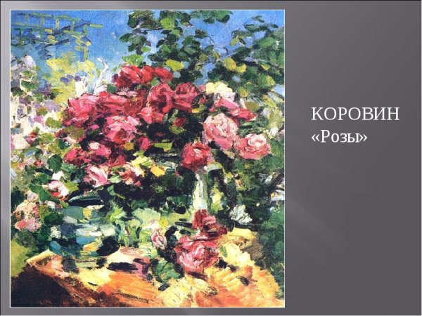Великий русский художник, Михаил Александрович Коровин, создал неповторимую серию натюрмортов, в которой особое место занимают его произведения с розами. Коровин умел передать красоту и изящество этих цветов, используя яркие и насыщенные цвета, а также играя с оттенками и светом. В его работах розы оживают на холсте, заставляя зрителя почувствовать их нежность и аромат. Натюрморты с розами Коровина являются не только прекрасными произведениями искусства, но и свидетельством великого таланта художника в передаче красоты природы. Такие работы способны поднять настроение и вызывать восторг у любителей живописи и цветов.