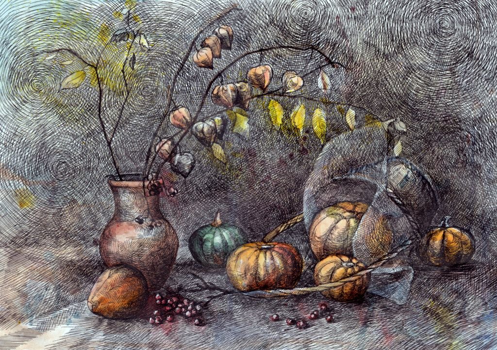 Осенний натюрморт с цветами, нарисованный карандашом, – это прекрасное произведение искусства, которое передает атмосферу осени и ее уникальную красоту. В этой композиции можно увидеть яркие листья в разных оттенках оранжевого и красного цвета, которые создают теплую и уютную атмосферу. Каждая деталь тщательно проработана мастером, отражая его талант и внимание к деталям. Цветы в натюрморте добавляют нотку свежести и живости, что создает интересный контраст с осенней палитрой. Разнообразие форм и текстур, переданных карандашными штрихами, делают эту работу уникальной и запоминающейся. Осенний натюрморт с цветами карандашом – это бесконечно прекрасное творчество, способное возбудить воображение и вызвать мощные эмоциональные реакции у зрителя.