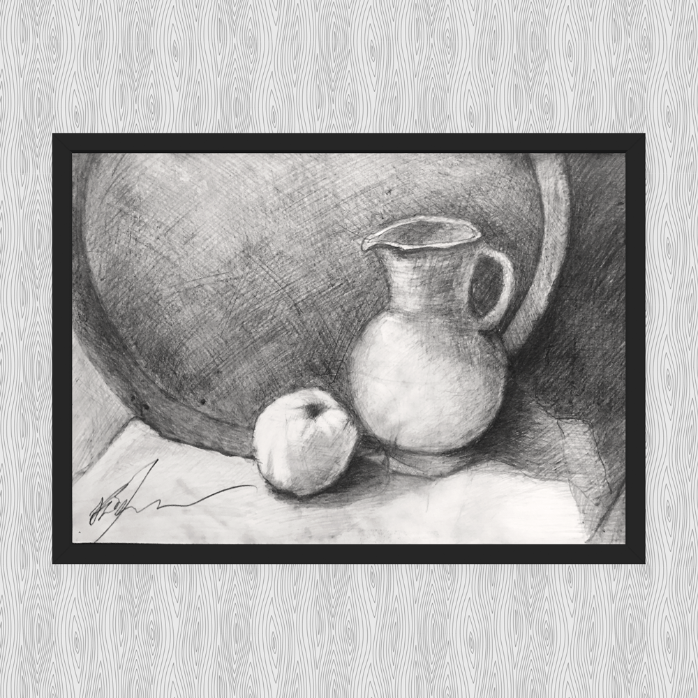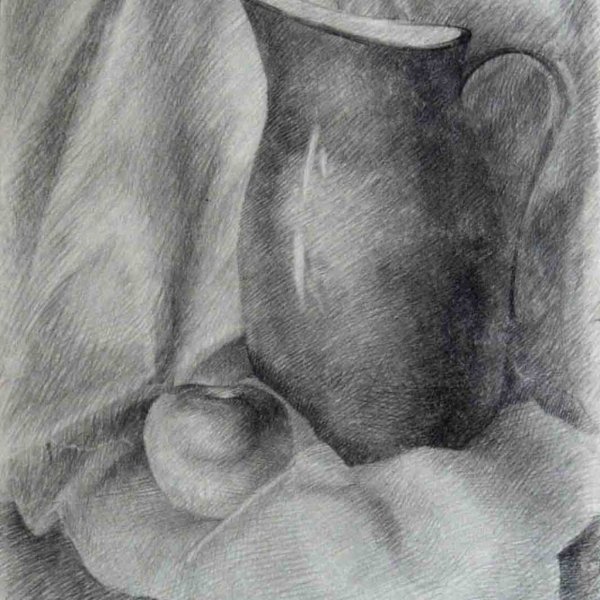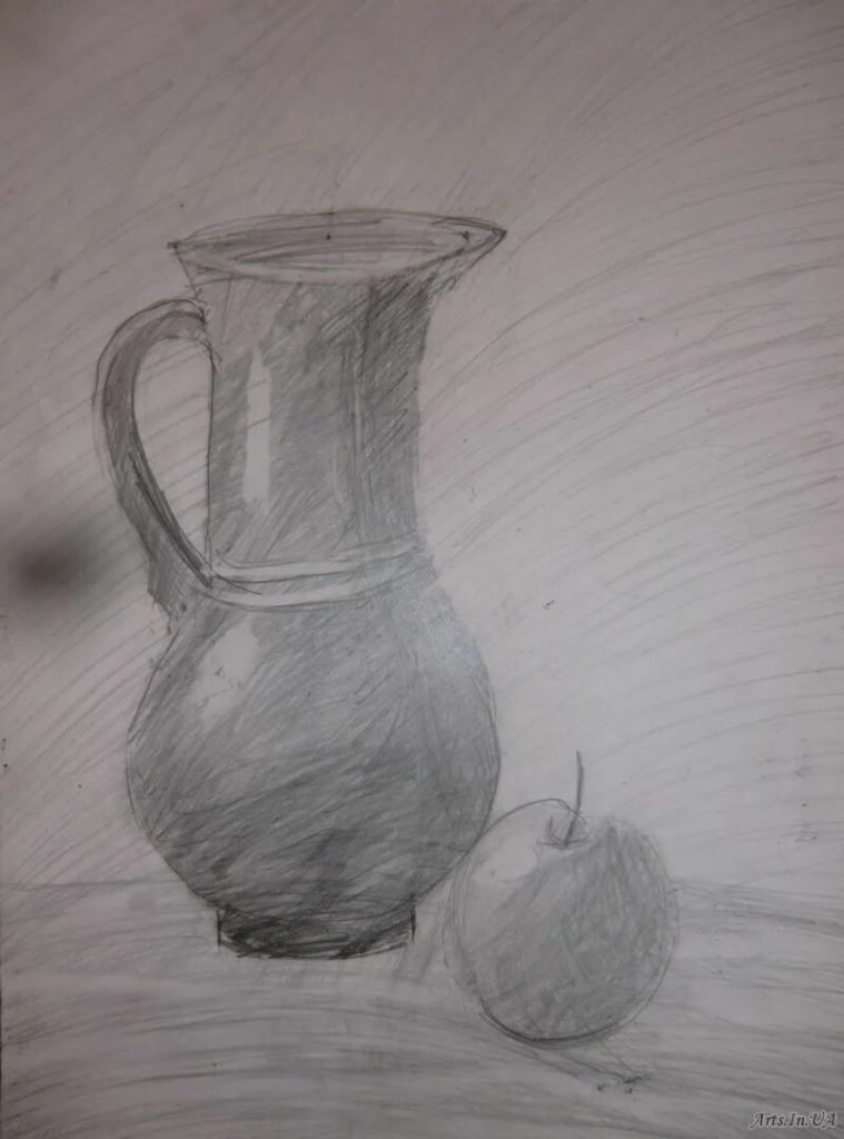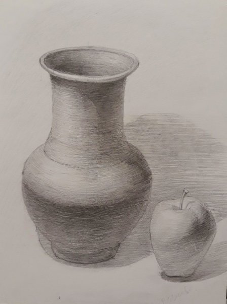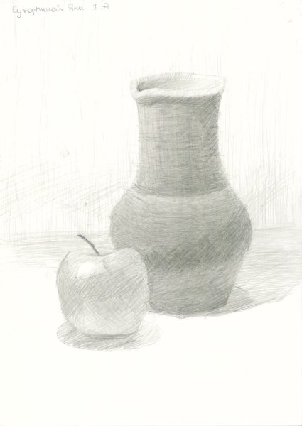 Уникальный натюрморт, выполненный карандашом, объединяет в себе два простых, но захватывающих объекта - кувшин и яблоко. Каждая деталь этого произведения искусства тщательно проработана с помощью навыков талантливого художника. Кувшин передает ощущение гладкой поверхности и элегантных изгибов, а яблоко вызывает желание узнать, насколько сочное и сладкое оно может быть. Однако, несмотря на свою простоту, этот натюрморт отражает скрытую глубину и символичность с помощью своих предметов. Кувшин может быть интерпретирован как символ домашнего уюта и комфорта, а яблоко - как символ жизни и плодородия. Этот натюрморт приносит радость и восхищение своей реалистичностью и чувством мастерства художника.