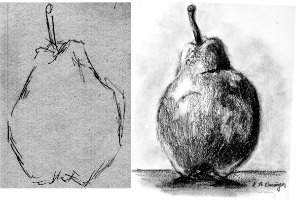 Наш натюрморт изображает грушу, воссозданную с помощью карандаша. Это удивительное сочетание реализма и творчества, которое позволяет нам увидеть всю красоту и детали этого фрукта. Каждая линия и тень карандашного наброска позволяют нам почувствовать текстуру и объем груши, создавая ощущение ее реальности. Здесь отчетливо видны мягкие переходы от светлых до темных оттенков, передающих глубину и объем объекта. Этот натюрморт является прекрасным примером таланта художника, который способен создать произведение искусства, используя самые обычные инструменты. Он приковывает взгляд, вызывая интерес и желание рассмотреть каждую деталь этого невероятного произведения искусства.