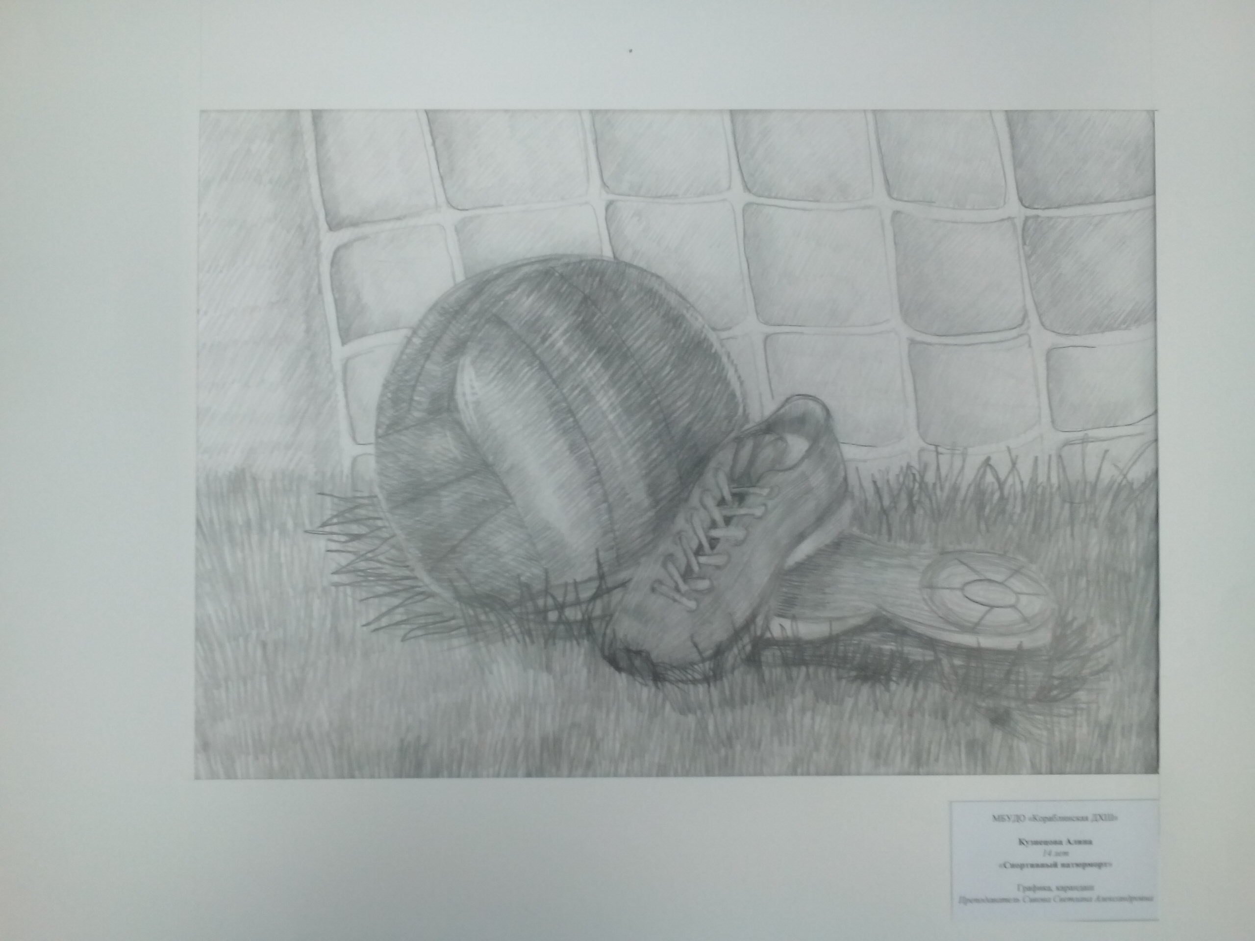 Натюрморт карандашом спортивный - это произведение искусства, выполненное с помощью обычных карандашей, которое изображает спортивные предметы или сцены. В таком натюрморте могут быть изображены спортивные снаряды, например, мячи разных видов спорта, резиновые гантели, скакалки, а также другие атрибуты физической активности. Карандаши позволяют передать тонкие детали и текстуры, создавая реалистичное изображение. Натюрморты карандашом спортивного характера могут служить как украшением интерьера спортивного зала, тренажерного зала или домашнего пространства, придавая ему энергичность и стиль. Они также отлично впишутся в коллекцию любителей искусства или станут оригинальным подарком для спортивных энтузиастов.