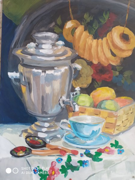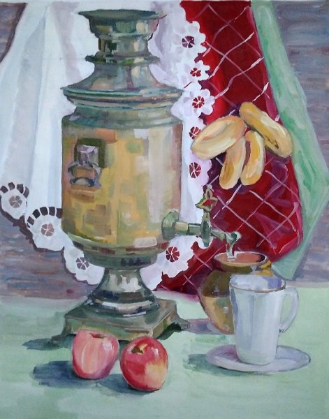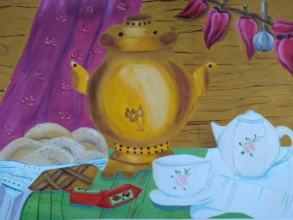 Натюрморт с самоваром – это рисунок, который запечатлевает момент из жизни. В центре внимания находится самовар, символизирующий традиции и уют русской кухни. Окружающие предметы, такие как чашки, ложки, фрукты или цветы, добавляют деталей и создают атмосферу. Рисунок натюрморта с самоваром может передать тепло и комфорт домашнего очага, а также вызвать чувство ностальгии за прошедшими временами. Каждая линия и тень в этом рисунке пронизана вниманием к деталям и отображает художественное мастерство автора. Отличительной особенностью такого рисунка является его способность оживить обычные предметы и передать гармонию и красоту.