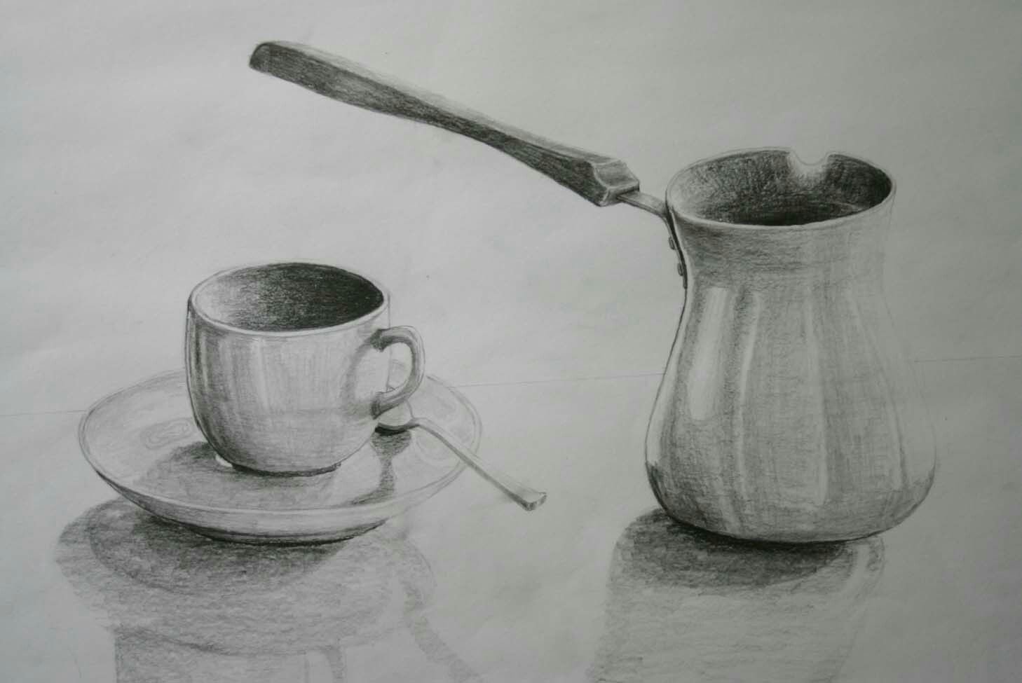 Карандашом создан натюрморт, в центре которого изображена кружка. Это произведение искусства передает нежность и тонкий эстетический вкус мастера, который сумел неповторимым образом передать каждую деталь на рисунке. Каждая черта и линия карандашного штриха пропитана вниманием и любовью к деталям. Великолепное использование светотеневых эффектов придает кружке объем и реалистичность, словно она готова выпустить ароматный пар. Это произведение искусства является не только прекрасным украшением для интерьера, но и отражением таланта и креативности автора.