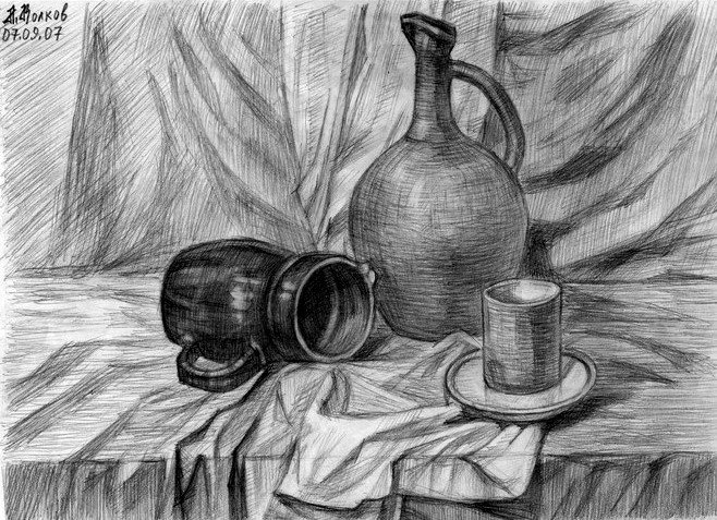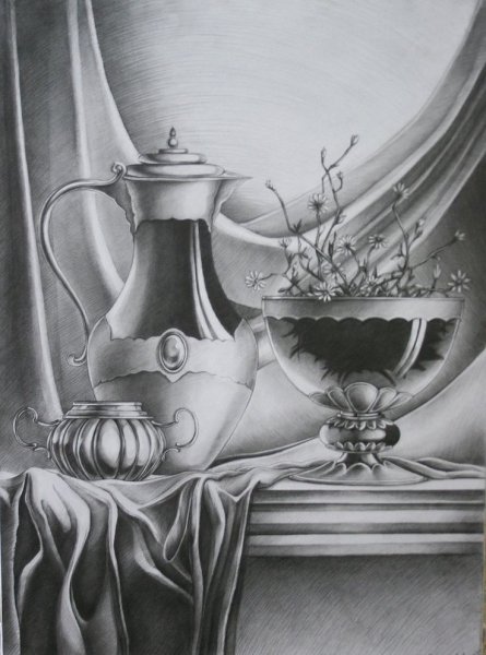 Натюрморт черным карандашом - это произведение искусства, созданное с помощью простого инструмента - карандаша. В этом натюрморте художник передал множество деталей и текстур, используя только оттенки серого и черного цветов. Он воссоздал каждую линию и контур предметов, обращая особое внимание на светотень и переходы. Черный карандаш придает работе особую глубину и эффектность, позволяя зрителю оценить тонкость и мастерство автора. Натюрморт черным карандашом может быть как реалистичным и детализированным, так и абстрактным и выразительным, отображая внутренний мир художника и его взгляд на окружающую действительность. Это искусство, которое воплощает красоту и глубину черно-белой графики, заставляя зрителя задуматься и раскрыть свои собственные эмоции и впечатления.