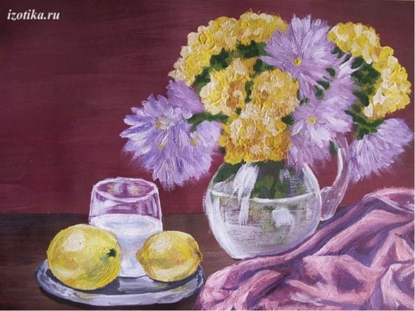 Натюрморт рисунок гуашью - это живописная техника, которая позволяет создать изображение предметов и объектов, используя гуашевые краски. В этой технике можно передать множество деталей и оттенков, воссоздавая реалистичный образ на бумаге или холсте. Гуашь позволяет играть с цветами и тонами, создавая яркие и насыщенные оттенки, а также различные текстуры и эффекты. Рисунок натюрморта гуашью может быть интересным и оригинальным способом выразить свои эмоции и воспоминания, а также отобразить красоту и гармонию природы или повседневных вещей.