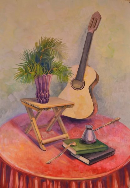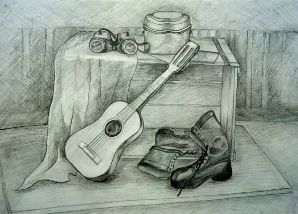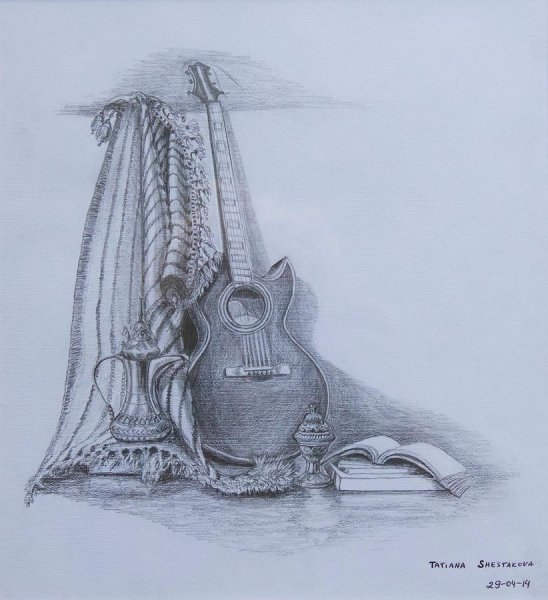 Этот натюрморт с гитарой карандашом - удивительное произведение искусства, которое притягивает взгляд своей оригинальностью. Он представляет из себя композицию, в которой гитара изображена с помощью карандашных штрихов, создавая эффект объемности и реалистичности. Каждая деталь этого натюрморта тщательно проработана, от теней на струнах гитары до текстуры деревянного корпуса. Это произведение искусства позволяет нам замедлиться и насладиться красотой музыкального инструмента, а также раскрыть своё воображение и воссоздать звуки, которые он может породить. Натюрморт с гитарой карандашом - это не только художественная работа, но и искренний призыв к ценности искусства в нашей жизни.