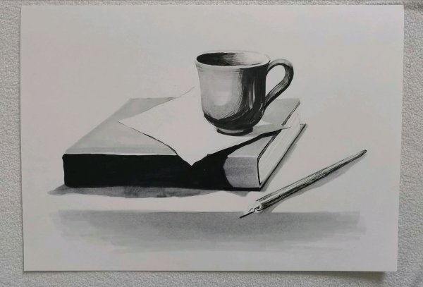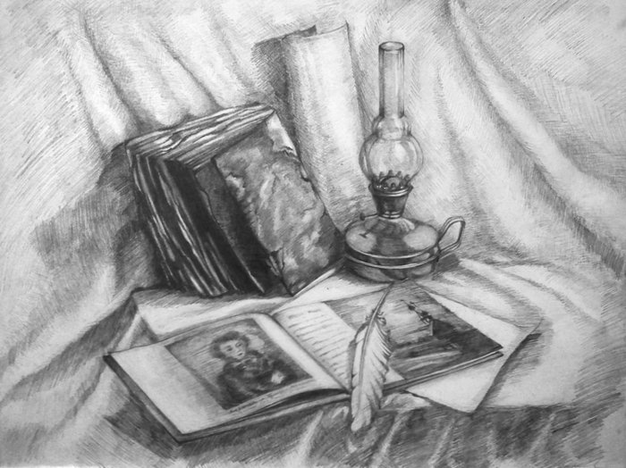 Представьте себе натюрморт, в центре которого расположена книга, окруженная разноцветными карандашами. Это произведение искусства поражает своей простотой и одновременно захватывает внимание зрителя. Книга находится на столе или на подоконнике, ее переплет и страницы могут быть видны, создавая ощущение реальности. Радуга ярких карандашей, расположенных рядом с книгой, добавляет живости и цвета в композицию. Она может быть уложена аккуратно рядом с книгой или разбросана хаотично, вызывая интерес и желание рассмотреть каждый отдельный карандаш. Каждый элемент этого натюрморта – книга и карандаши – символизирует творчество, знания и вдохновение. Образ книги призывает читателя к изучению и погружению в мир фантазии и знаний, а карандаши - к творчеству и самовыражению. Натюрморт с книгой и карандашом кармически сочетает в себе два важных аспекта нашей жизни - образование и саморазвитие. Это произведение искусства может служить как напоминание о необходимости постоянного обучения, так и источником вдохновения для любителей творчества. Оно является отражением нашего стремления к знаниям и раскрытию своего творческого потенциала.