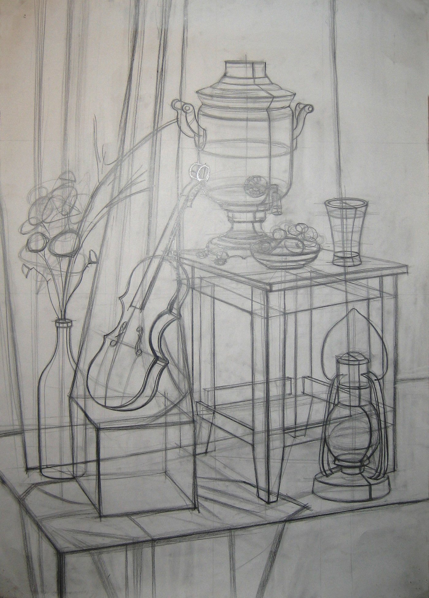 Линейный рисунок натюрморта - это изображение предметов, выполненное исключительно с помощью линий. В таком рисунке отсутствуют тени, цвета и тонкие детали, фокус сосредоточен исключительно на формах и контурах объектов. Линии влияют на композицию и создают ощущение объема, позволяя передать структуру и текстуру предметов. Натюрморт в линейном стиле может быть очень выразительным и эмоциональным, подчеркивая красоту и гармонию обычных повседневных вещей. Этот стиль рисунка часто используется для создания абстрактных и сюрреалистических произведений и предлагает много возможностей для творчества и эксперимента.