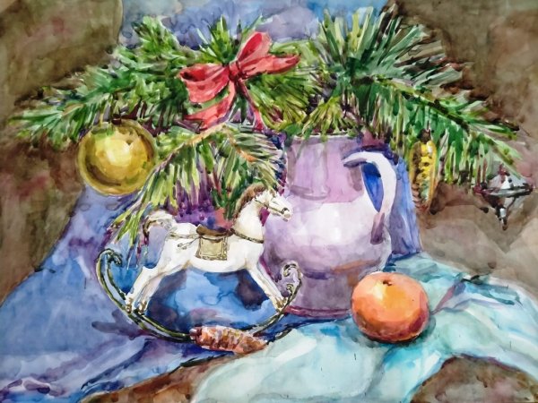 Детский рисунок зимний натюрморт представляет собой яркую и веселую картину, которая передает атмосферу зимнего дня. На рисунке изображены различные элементы природы, характерных для зимнего сезона – снежные холмы, деревья с голыми ветвями, покрытые снегом, искрящийся лед на реке или пруду, а также солнце, освещающее всю картину своим теплым светом. Важной частью рисунка являются также детали, создающие атмосферу зимнего уюта – снеговики, люди, катающиеся на санках или лыжах, играющие дети. Яркие краски и стремительные движения нарисованных персонажей делают этот рисунок живым и полным энергии. Детский зимний натюрморт - это отличная возможность для детей проявить свою фантазию, воплотить свое видение зимнего мира и подарить радость и восторг всем, кто увидит их творчество.