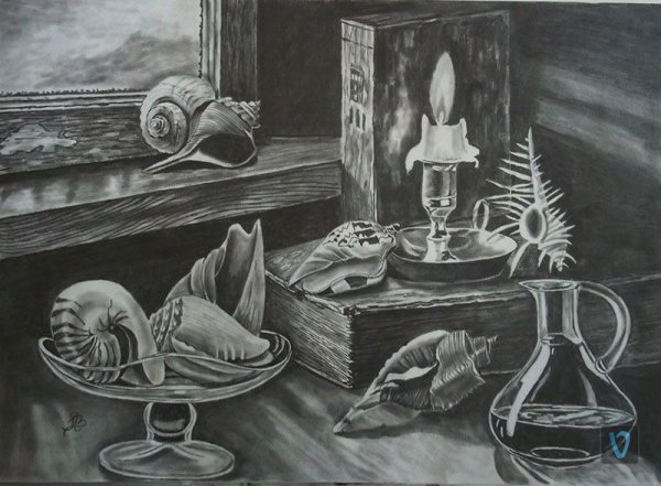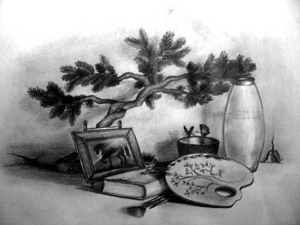 Удивительное и впечатляющее произведение искусства в виде новогоднего натюрморта, созданного с использованием графики карандашом. Эта уникальная техника позволяет передать каждую мелочь и деталь с поразительной точностью и реализмом. На черно-белом фоне оживает изображение праздничных элементов: ёлки, игрушек, свечей, подарков и других символов Нового года. Отчетливые линии и тени, способные передать объем и текстуру, придают работе особую глубину и реалистичность. Этот натюрморт станет прекрасным украшением интерьера во время праздничного сезона и несомненно вызывает восторг и восхищение у зрителей.