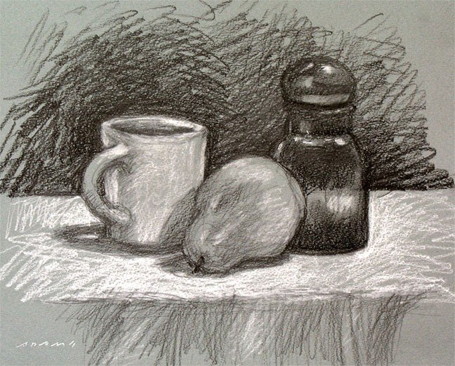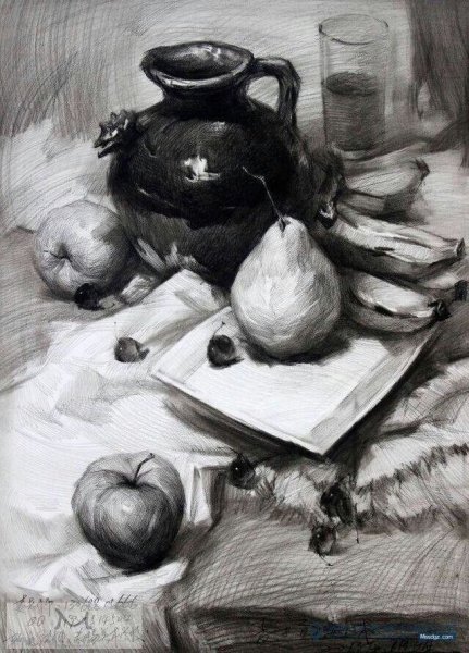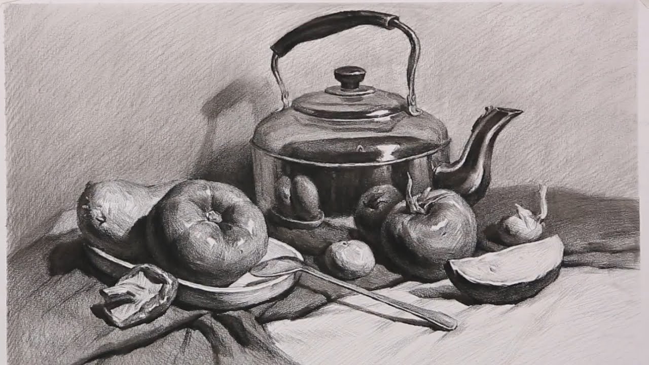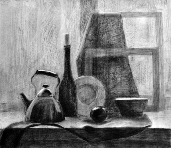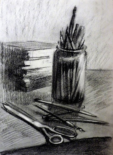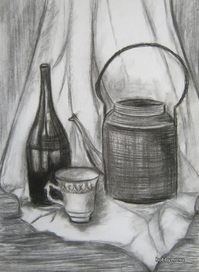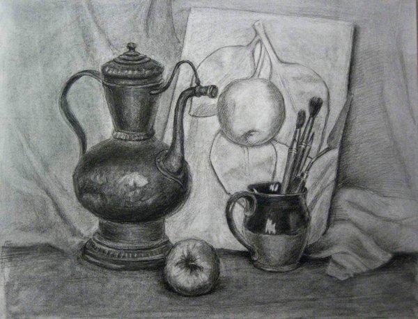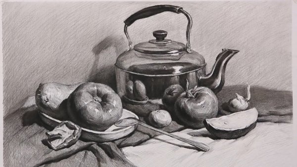 Натюрморт угольным карандашом - это художественная работа, выполненная с использованием угольных карандашей. В такой натюрморт передается внимание к деталям и тонкости черно-белого изображения. Угольные карандаши позволяют создавать глубину и объемность объектов, добавляя им реалистичность и выразительность. Такой вид искусства отличается своей оригинальностью и особой эстетикой, способной привлечь внимание зрителя. Натюрморты угольным карандашом могут быть разнообразными: начиная от простых предметов быта и заканчивая сложными композициями из фруктов, цветов и других объектов. Они являются интересным способом самовыражения для художников, желающих подчеркнуть мастерство и творческий потенциал.