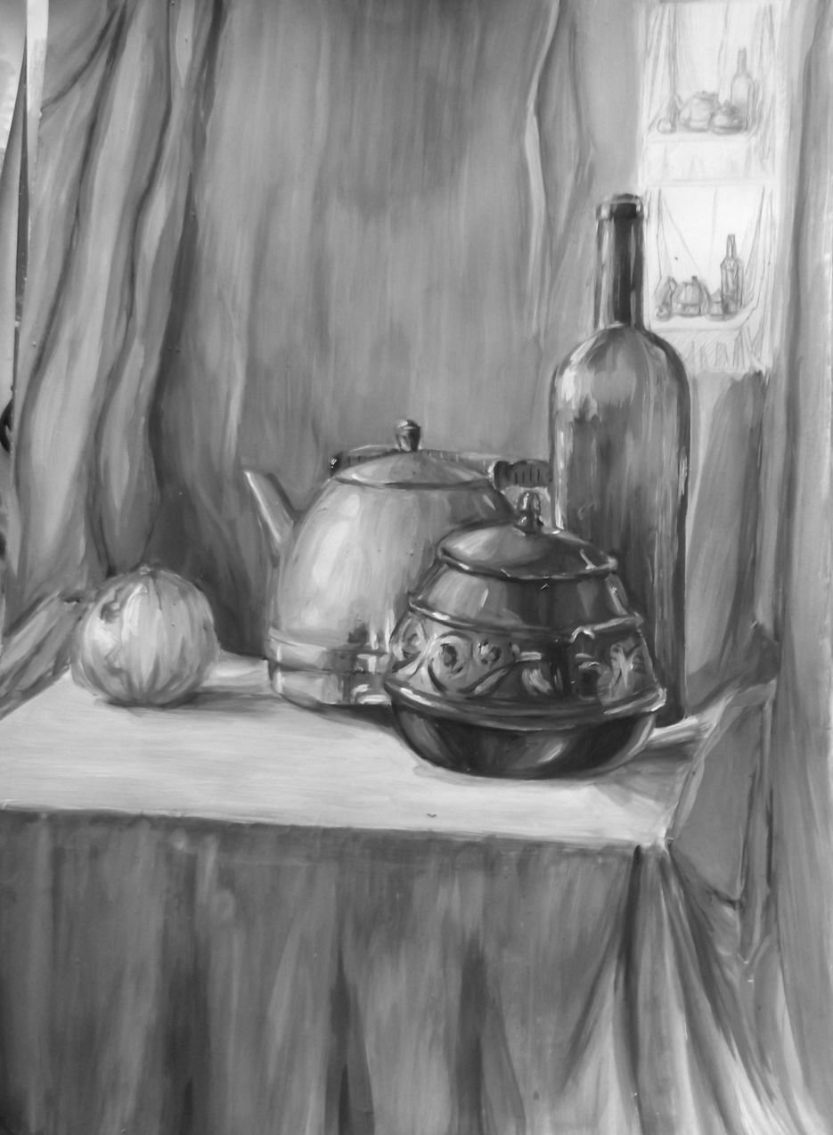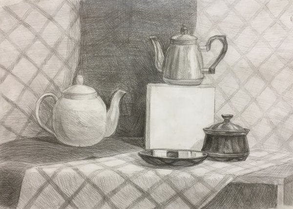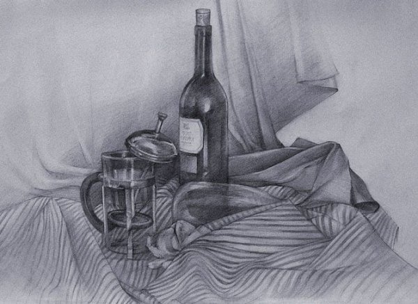 На столе лежит натюрморт, созданный мастерством и карандашом. Это произведение искусства воплощает в себе красоту и эстетику простых предметов, которые обычно не привлекают наше внимание. Каждая черта, каждая тень, каждый штрих карандаша точно передает форму и текстуру объектов - от фруктов до цветов, от стеклянных бутылок до керамической посуды. Такое натюрмортное изображение способно перенести нас в другую реальность, где кажется, будто можно потрогать каждый элемент этого невероятного произведения искусства. Оно призывает нас замедлиться и задуматься о красоте простых вещей, которые окружают нас в повседневной жизни.
