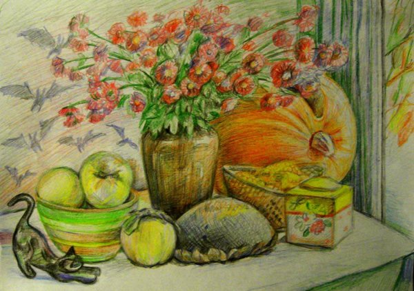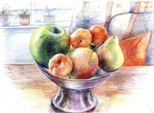 Натюрморт цветными карандашами для детей - это замечательный способ развивать у детей творческие навыки и воображение. Ведь рисование натюрморта позволяет малышам изучать формы и цвета предметов, а также улучшает их моторику и координацию движений. Создавая свой собственный натюрморт с использованием ярких и красочных карандашей, дети могут выразить свои эмоции и фантазии, а также развить свое художественное мышление. Это отличная возможность для детей раскрыть свой потенциал и ощутить радость творчества.