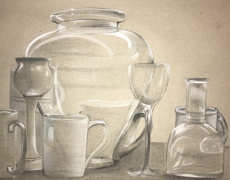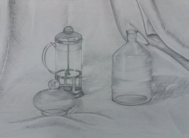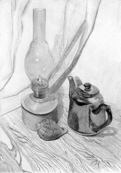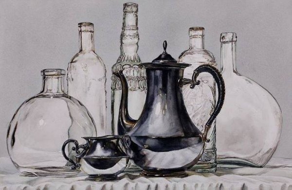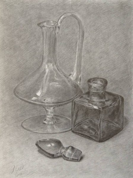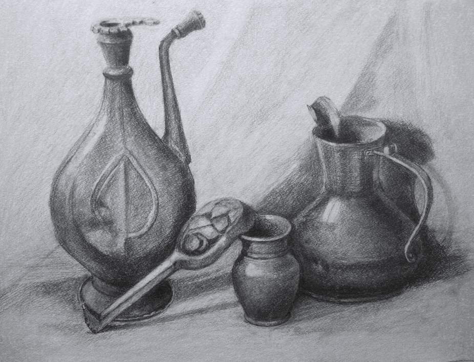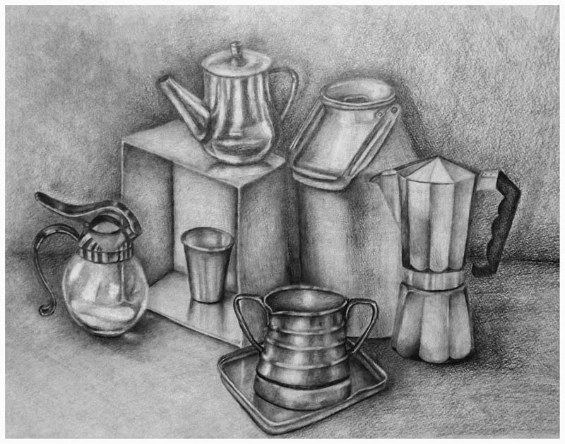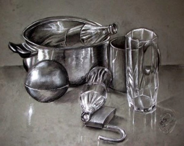 Очаровательный натюрморт, выполненный карандашом, запечатлевает великолепие металлической и стеклянной посуды. В этой уникальной композиции каждая деталь выражает свою индивидуальность и эстетическую ценность. Металлические предметы сияют благородным металлическим отливом, подчеркивая свою прочность и изящество формы. Стекло, как символ прозрачности и хрупкости, создает игру света и тени, придавая натюрморту особый загадочный шарм. Взглянув на это произведение искусства, необходимо признать, что карандаш может быть мощным инструментом, способным передать всю красоту и гармонию окружающего мира.