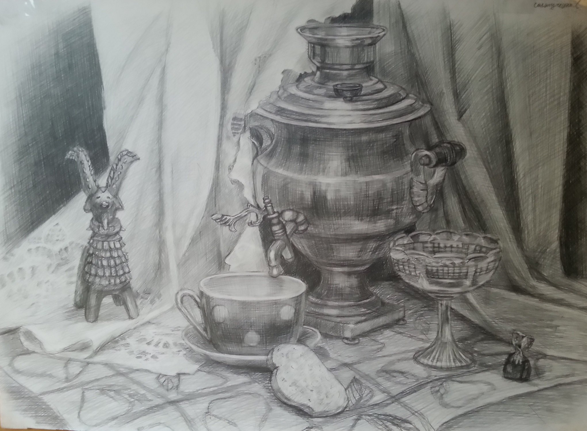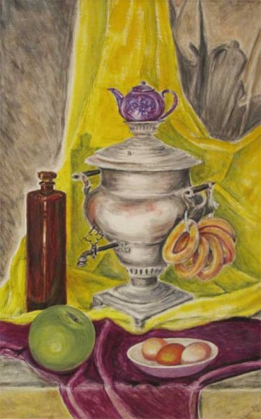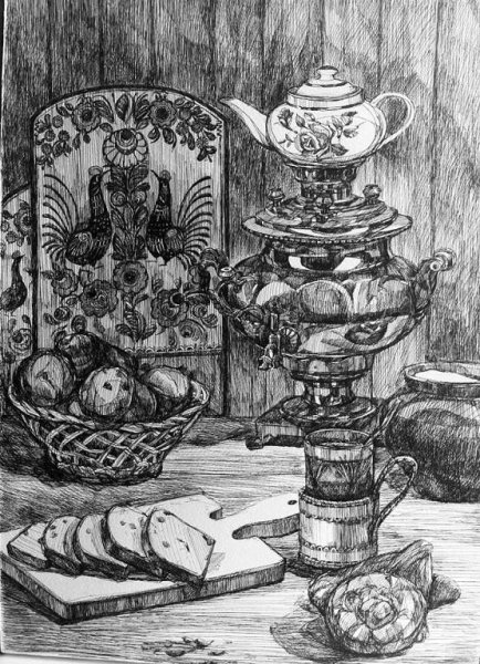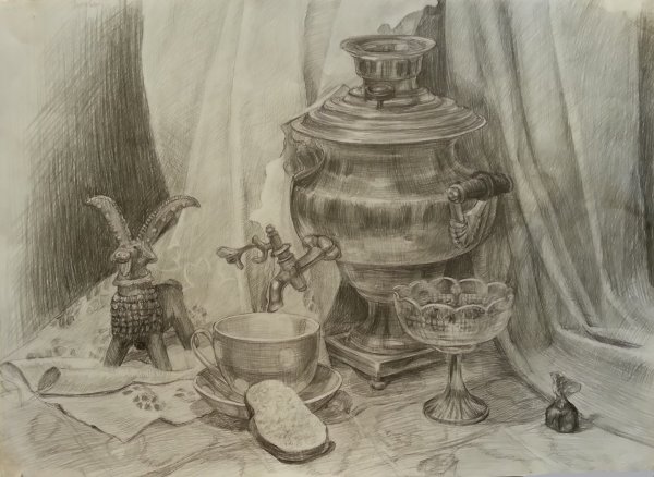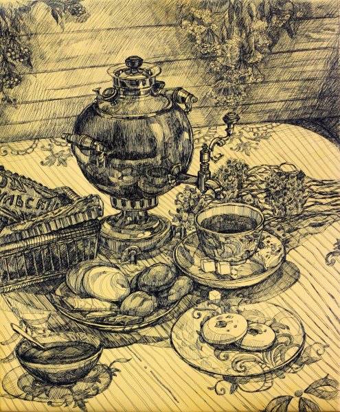 Оживите свою фантазию и погрузитесь в мир замечательного искусства с этим натюрмортом "Самовар карандашом". Каждая деталь этой удивительной композиции, воплощенной на холсте, так тонко проработана, что вы можете почувствовать запах свежего чая, разливающегося из самовара. Линии карандаша создают реалистичные тени и отражения, делая этот натюрморт настолько живым, что можно не только увидеть, но и почувствовать текстуру каждого предмета. Чувство тепла и уюта, которое излучает этот произведение искусства, заставляет нас остановиться на мгновение и насладиться прекрасной гармонией объектов, соединенных общей темой - самоваром и карандашом. Независимо от того, являетесь ли вы ценителем искусства или просто любите наслаждаться красотой, этот натюрморт станет прекрасным дополнением к вашему интерьеру и вызовет умиротворение и восхищение у всех, кто его увидит.