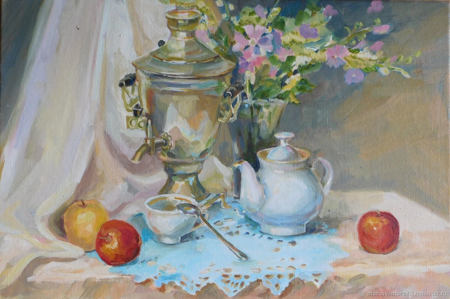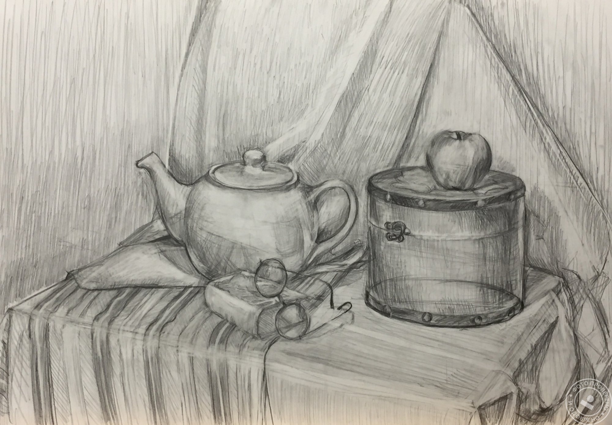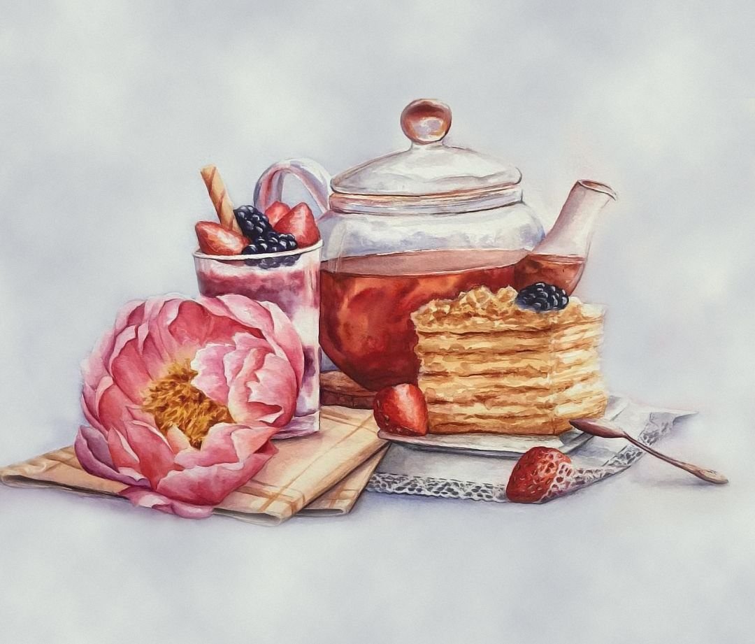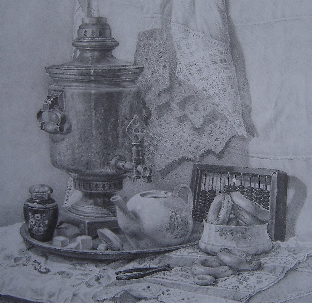 Натюрморт "Чаепитие" выполнен карандашом - это удивительное произведение искусства, которое захватывает взгляд своей нежностью и тонкостью. В этом натюрморте изображены различные предметы, связанные с чаепитием: фарфоровая чашка, блюдце, ложечка, а также нежный чайник и свежие цветы. Используя мастерство и технику карандашного рисунка, художник передал каждую деталь с особой точностью и реализмом. Такие работы великолепно подходят для оформления интерьера, создавая гармоничную и расслабляющую атмосферу. Карандашный натюрморт "Чаепитие" станет прекрасным украшением для вашего дома или офиса и будет радовать глаз своей элегантностью и изысканностью.