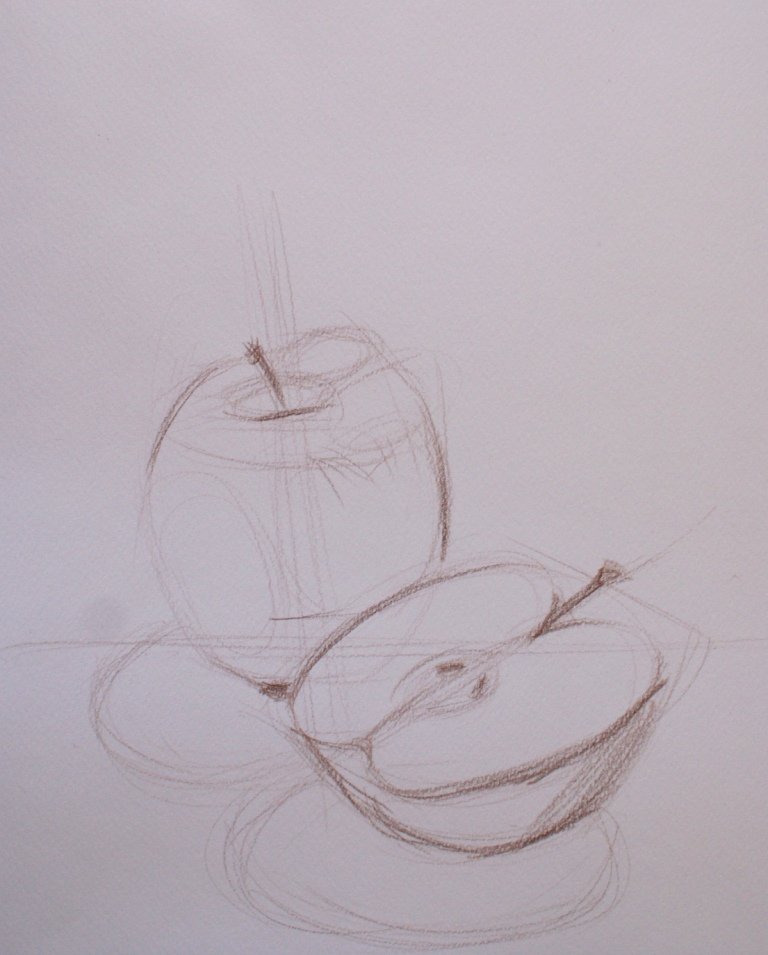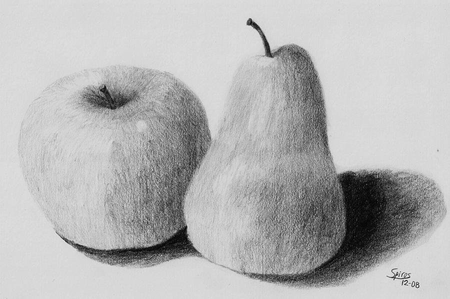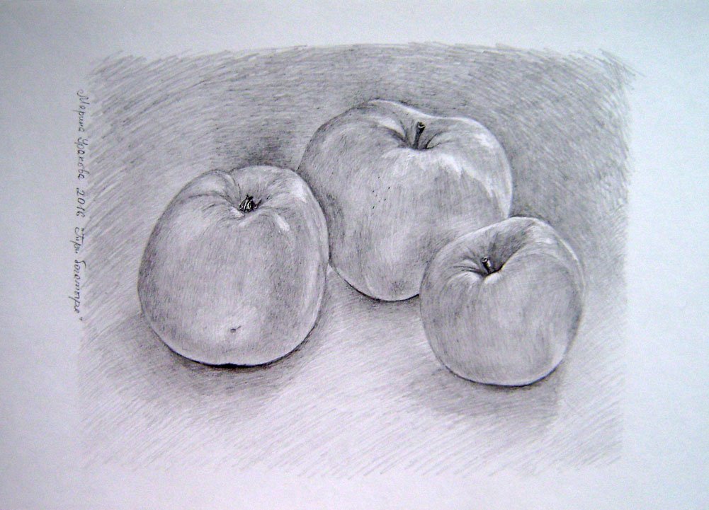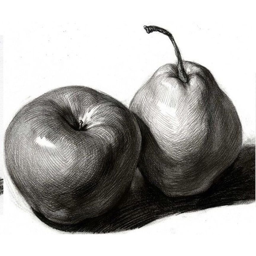 Этот натюрморт изображает яблоко, нарисованное при помощи простого карандаша. Изящные линии и тонкие штрихи создают детальное изображение плода, передавая его форму, текстуру и оттенки. Каждое малейшее изменение в тоне и фактуре позволяет передать объемность и реалистичность яблока. Использование карандаша добавляет эффект глубины и тени, создавая игру света и темноты. Такой натюрморт способен заинтересовать зрителя, вызывая в нем желание дотронуться к этому образу и почувствовать его реальность.