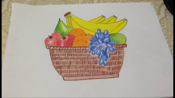 Корзина с фруктами - это красивый и живописный натюрморт, который привлекает внимание своей яркостью и разнообразием цветов. На рисунке изображена классическая корзина, наполненная сочными и свежими фруктами разных видов: яркие апельсины, сладкие яблоки, сочные груши, ароматные персики и многое другое. Их яркие оттенки и насыщенные цвета создают ощущение полного плодородия и изобилия. Каждый фрукт в корзине выглядит столь живописно, что заставляет зрителя почувствовать настоящий аппетит. Этот рисунок передает атмосферу летнего плодородного сада и является идеальным дополнением для интерьера кухни или столовой. Он привносит свежесть и яркость в обстановку, а также может стать отличным подарком для любителей фруктов и искусства.