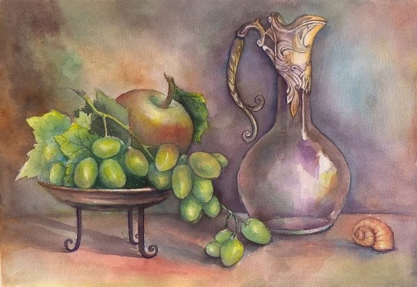 Ваше внимание предлагается натюрморт, изображающий яблоко и виноград, созданный с использованием карандаша. Это произведение искусства замечательно передает реалистичность и детализацию каждой маленькой детали, что придает ему уникальность и привлекательность. Яблоко отличается яркими оттенками красной и зеленой, а виноградные грозди изображены с тонкими линиями и обволакивающей формой. Эта работа вызывает чувство гармонии и спокойствия, олицетворяя величие природы и красоту ее плодов. Техника карандашного рисунка добавляет особый шарм этому натюрморту, подчеркивая мастерство художника и его способность передавать эмоции через черно-белые оттенки. Весьма вдохновляющее произведение искусства, которое порадует глаз и подарит умиротворение наблюдателю.