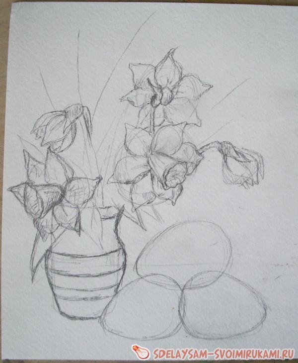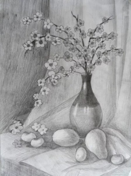 Натюрморт с изображением вазы, цветов и фруктов, выполненный карандашом, представляет собой уникальное произведение искусства. В этом детально проработанном рисунке каждая линия, каждая тень создают глубину и объемность объектов. Ваза, скрашенная яркими цветами и наполненная свежими фруктами, передает ощущение живости и богатства природы. В целом, натюрморт карандашом является удивительным сочетанием таланта художника и его способности передать красоту и эстетику природных объектов на бумаге. Это произведение искусства способно приковывать взгляд зрителя и вызывать в нем желание почувствовать аромат цветов и попробовать сочные фрукты, которые так реалистично изображены на рисунке.
