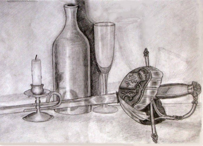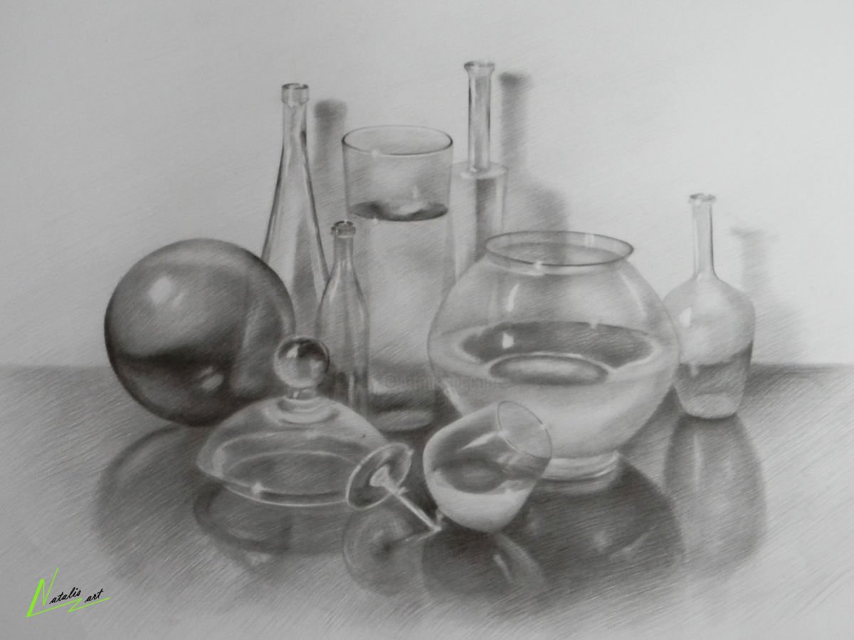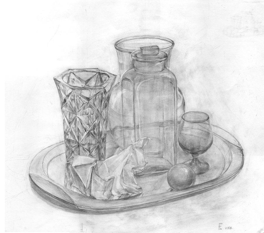Натюрморт с использованием стеклянных предметов, нарисованный карандашом, - это удивительное произведение искусства, которое воплощает тонкость и прозрачность стекла. Каждый отдельный предмет находится в центре внимания и раскрывает свою уникальную текстуру и форму благодаря искусному использованию карандаша. Разнообразие стеклянных объектов, таких как вазы, бокалы, флаконы или стеклянные фигурки, создает красивую композицию, где игра света и теней придает работе глубину и объем. Такой натюрморт способен захватить внимание зрителя своей утонченностью и хрупкостью, передавая эстетическую красоту стекла через мастерство художника.