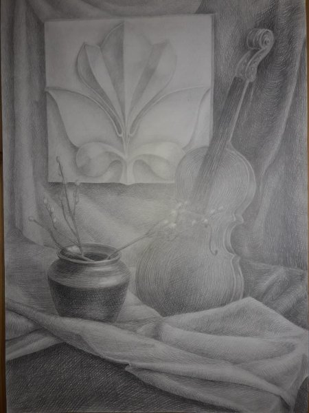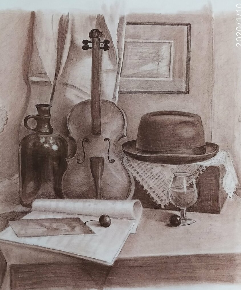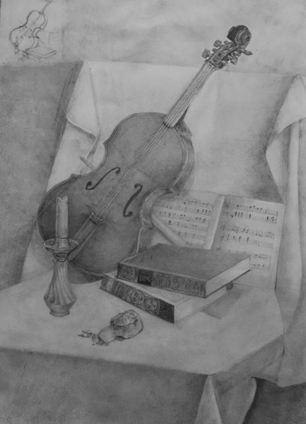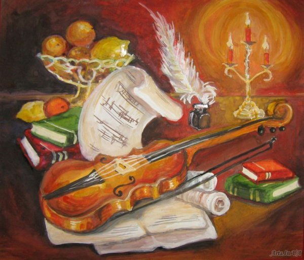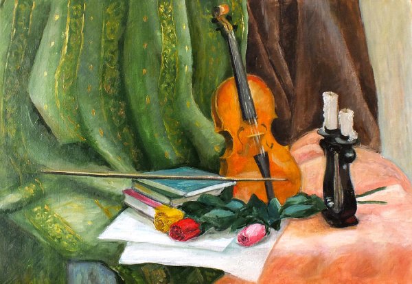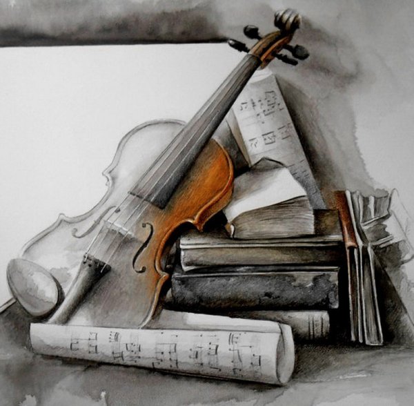 Представьте себе великолепный рисунок натюрморта, на котором изображена прекрасно сформированная скрипка. Этот произведение искусства захватывает взгляд своей элегантностью и реалистичностью. Каждая деталь скрипки воссоздана с такой точностью, что можно почувствовать звук ее струн и ласковое прикосновение музыканта к ней. Цветовая гамма рисунка передает особую атмосферу и теплоту, словно олицетворяя музыку, которую можно услышать внутри этой прекрасной инструментальной композиции. Этот натюрморт со скрипкой является не только украшением интерьера, но и неповторимым воплощением искусства музыки.