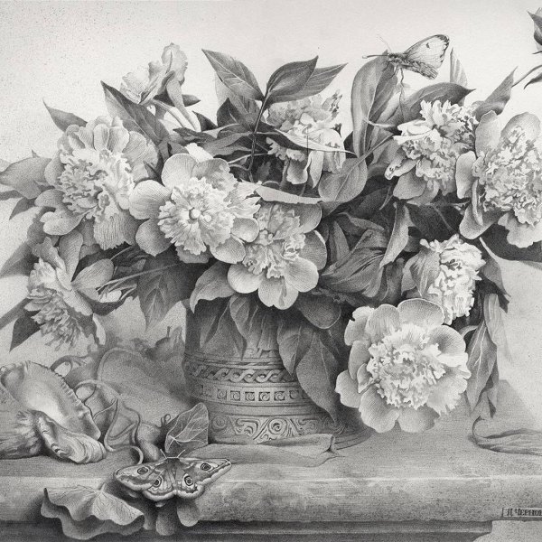 Цветочный натюрморт, выполненный карандашом, - это удивительное произведение искусства, которое позволяет передать красоту и нежность цветов с помощью черно-белых оттенков. Благодаря мастерству художника, каждая линия и штрих приобретает особую выразительность, создавая гармоничную композицию из разных видов цветов. От роскошных роз до изящных лилий, каждый цветок оживает на бумаге, захватывая взгляд зрителя своей яркостью и детализацией. Карандашный натюрморт цветов - это не только способ передать их красоту, но и умение играть светом и тенями, создавая объем и глубину. Такое произведение искусства станет прекрасным украшением интерьера или подарком для любителей изящных и элегантных комнат.