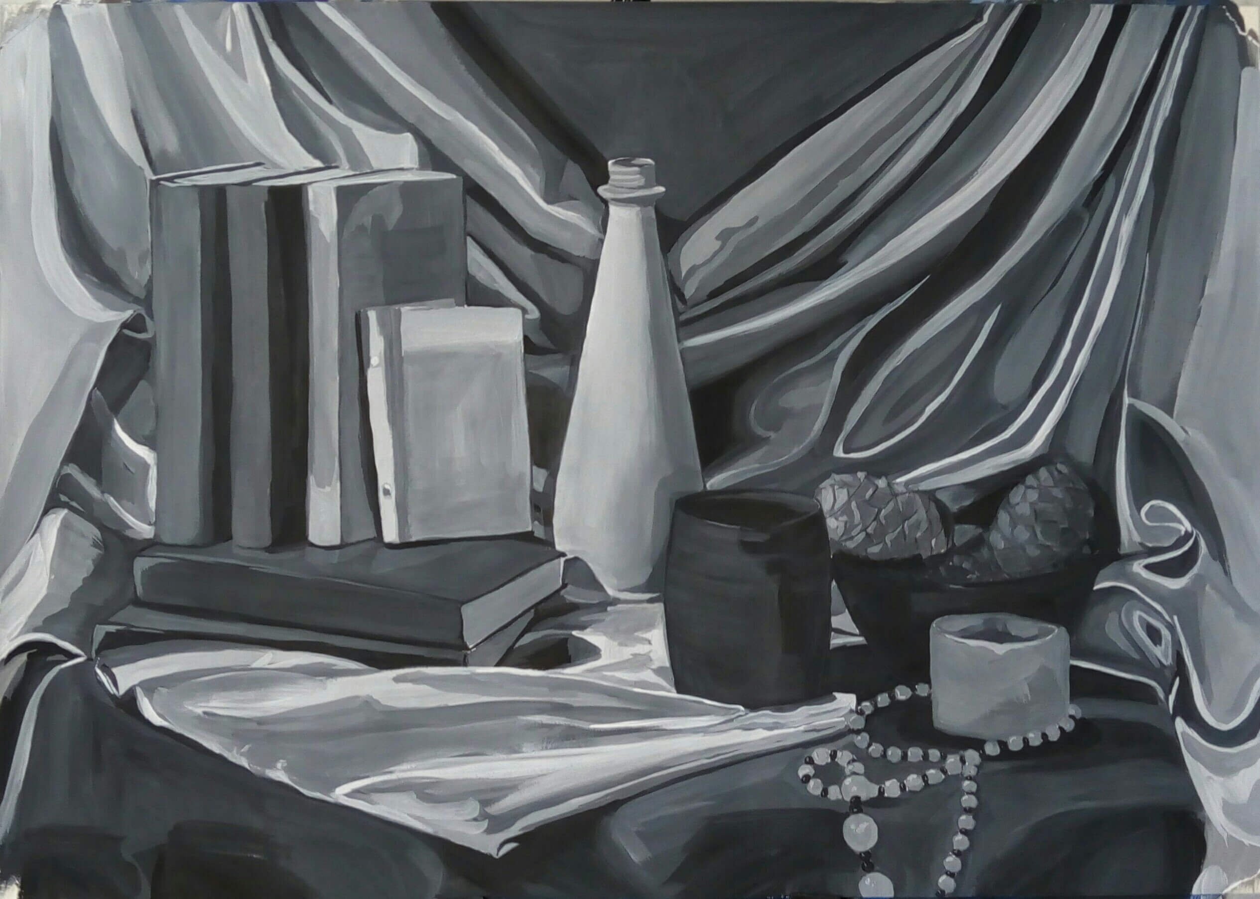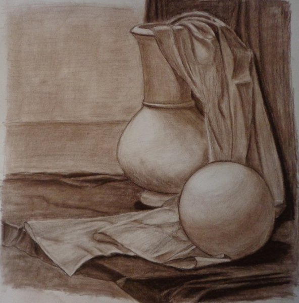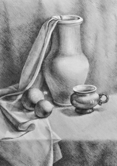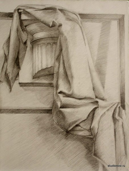 Натюрморт с драпировкой – это рисунок, который изображает предметы, обычно фрукты, цветы или предметы интерьера, с расположенной рядом драпировкой ткани. Эта композиция создает эффект глубины и объема, добавляя интересные текстурные элементы к общему визуальному впечатлению. Драпировка ткани может быть изящной и плавной, создавая ощущение движения и легкости, либо иметь более жесткие и строгие формы, придающие рисунку более классический или стилизованный вид. Натюрморт с драпировкой – это прекрасное сочетание реализма и художественной интерпретации, которое привлекает внимание зрителя своей красотой и уникальностью.