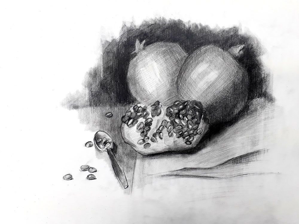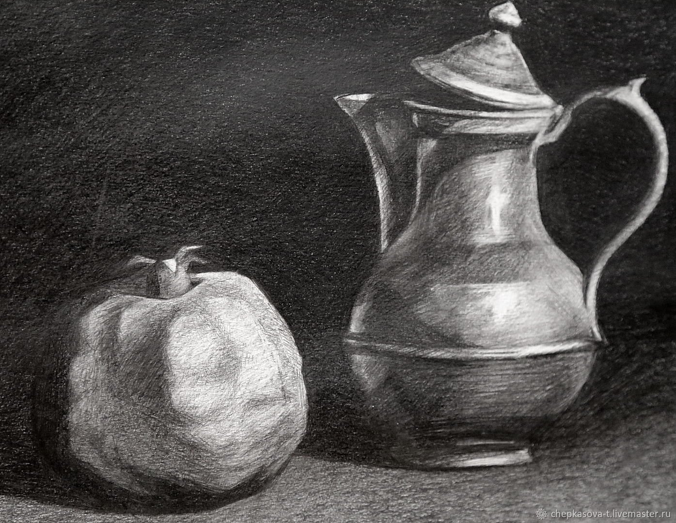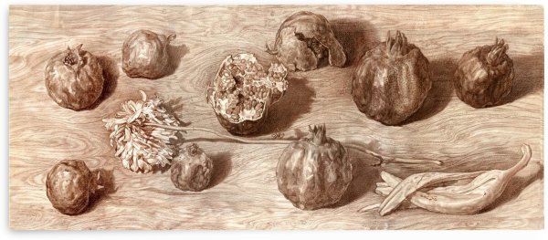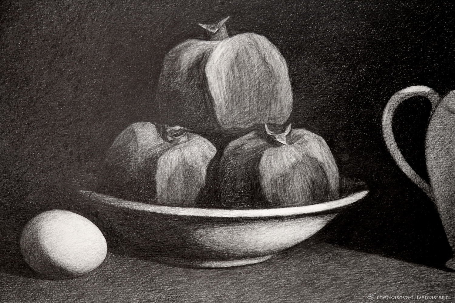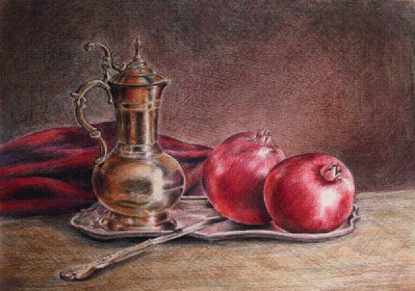Гранат натюрморт карандашом представляет собой уникальное и оригинальное произведение искусства, созданное с помощью обычных карандашей. Эта композиция захватывает взгляд своими деталями и мастерством исполнения. Каждая черта и тень проработаны с особым вниманием к деталям, что придает рисунку объем и реалистичность. Гранаты, изображенные на натюрморте, словно оживают перед нами, вызывая чувство желания потрогать их, почувствовать их вес в руках. Невероятная техника работы с карандашом позволяет передать каждую текстуру гладкой кожуры и сочного яркого плода. Это произведение искусства способно украсить интерьер любого помещения и стать ярким акцентом в вашем доме или офисе.