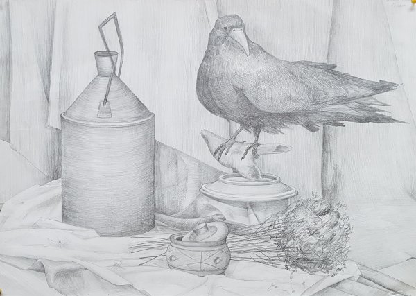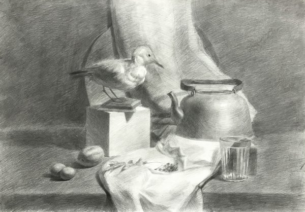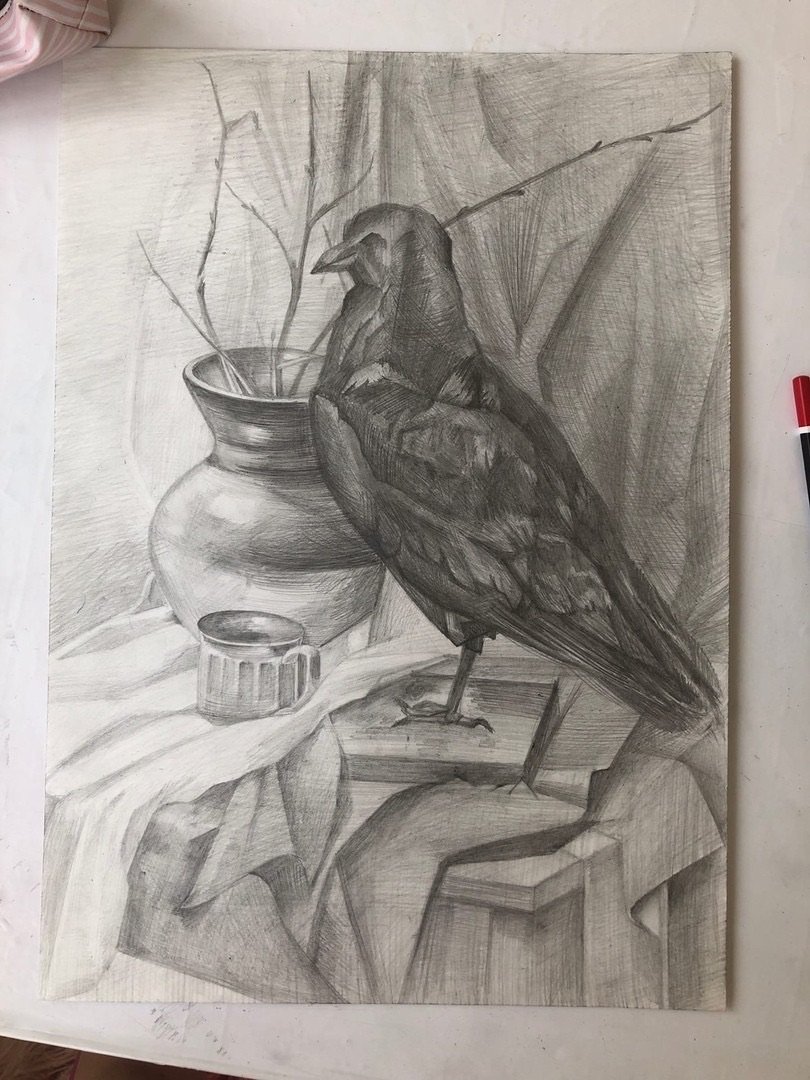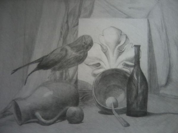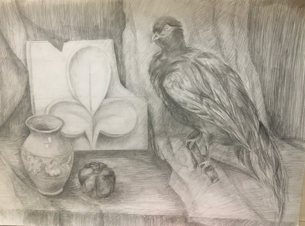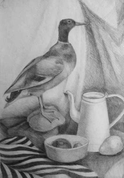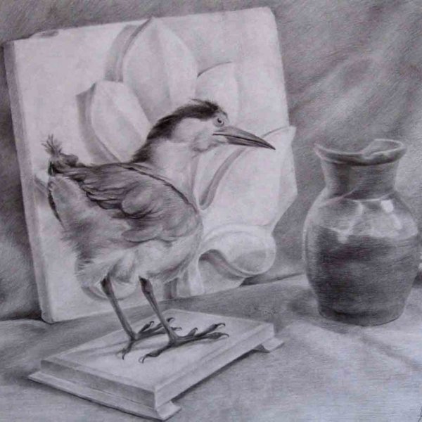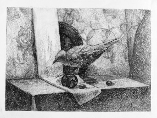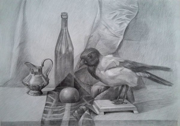 Натюрморт с птицей карандашом - это произведение искусства, которое захватывает внимание своей тонкой проработкой деталей и неповторимым стилем. В этой работе художник создал потрясающую композицию, объединив на одной поверхности живописные элементы и предметы реального мира. Особенностью этого натюрморта является изображение птицы, выполненное карандашом. Ее грациозная фигура и естественная поза придают картине животворный и динамичный характер. Каждая линия и тень тщательно продуманы, создавая ощущение глубины и объемности. Благодаря мастерству автора, натюрморт с птицей карандашом вызывает восхищение и умиление, оставляя незабываемые впечатления у зрителя.