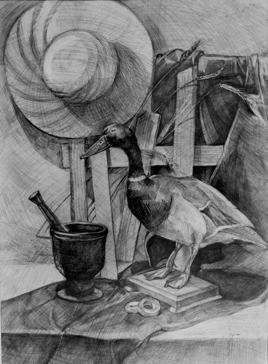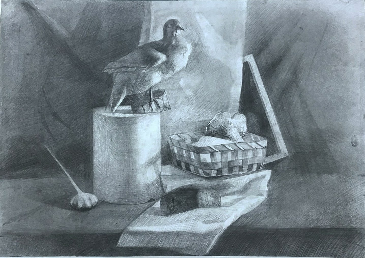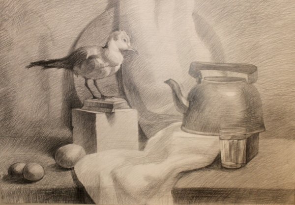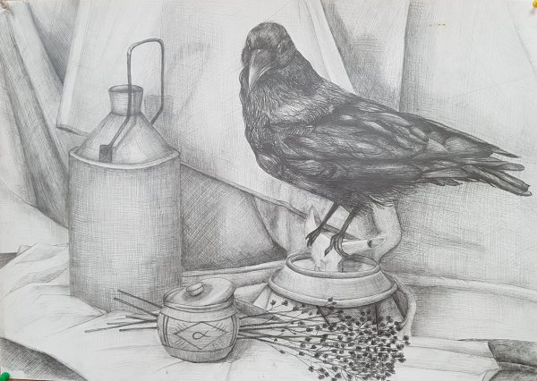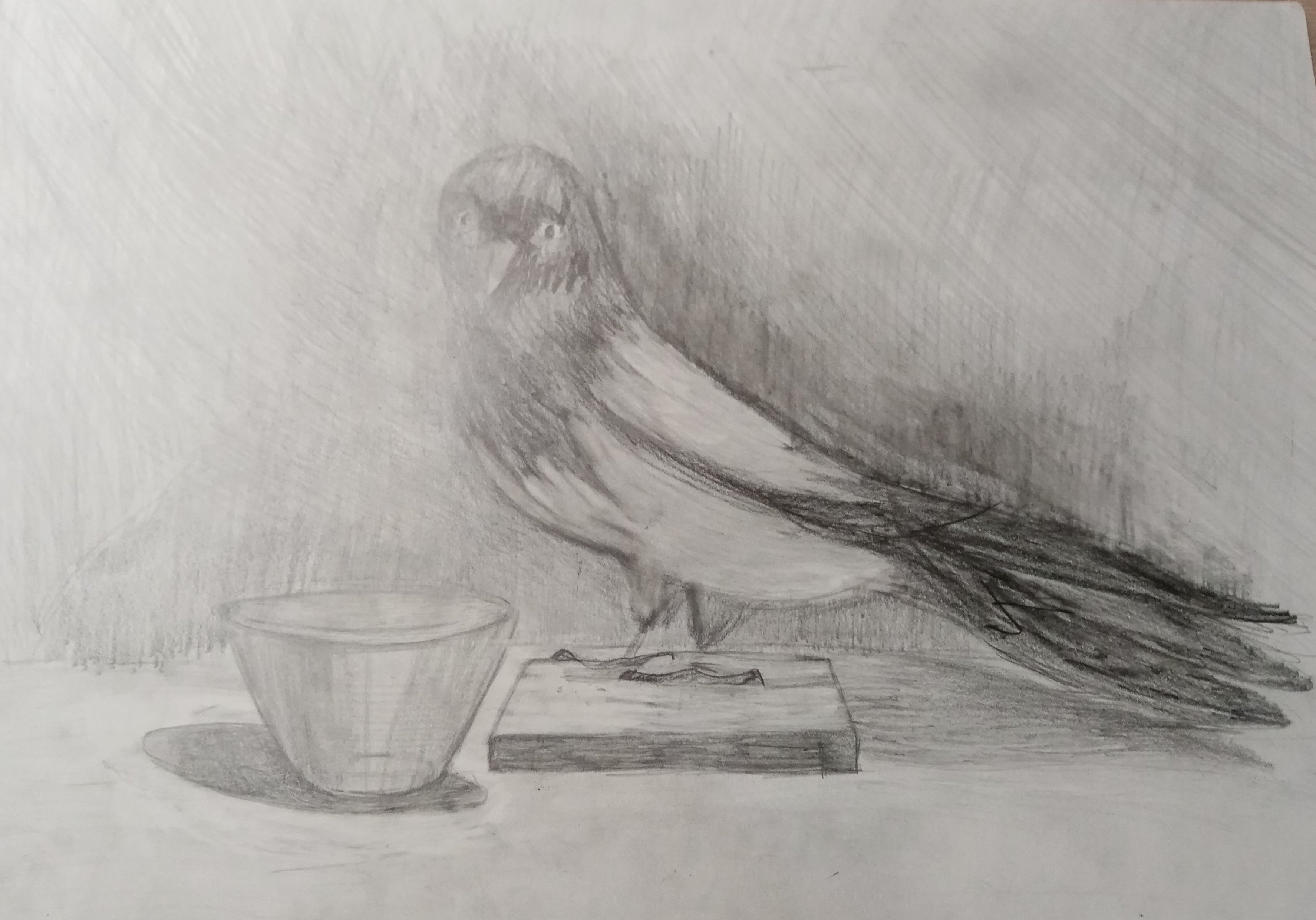 Натюрморт с птицей карандашом - это произведение искусства, которое захватывает внимание своей тонкой проработкой деталей и неповторимым стилем. В этой работе художник создал потрясающую композицию, объединив на одной поверхности живописные элементы и предметы реального мира. Особенностью этого натюрморта является изображение птицы, выполненное карандашом. Ее грациозная фигура и естественная поза придают картине животворный и динамичный характер. Каждая линия и тень тщательно продуманы, создавая ощущение глубины и объемности. Благодаря мастерству автора, натюрморт с птицей карандашом вызывает восхищение и умиление, оставляя незабываемые впечатления у зрителя.