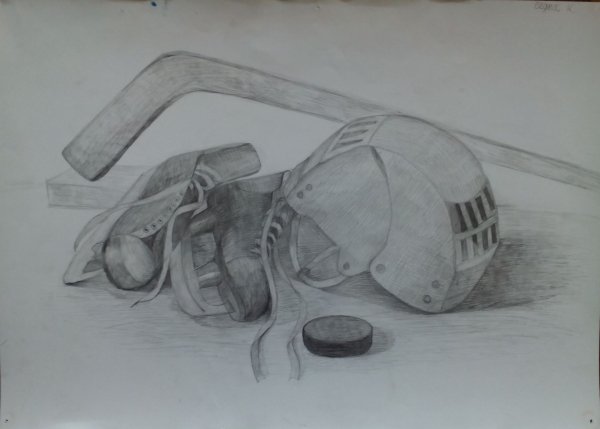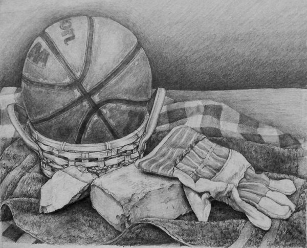 Спортивный инвентарь, прекрасно изображенный карандашом на натюрморте, приковывает внимание своей реалистичностью и точностью деталей. Каждая линия, каждая тень, созданная искусными штрихами, передает ощущение объема и текстуры предметов. В этом произведении искусства можно увидеть мячи различной формы и цвета, гантели, плавательные очки, тренажеры и другие спортивные атрибуты. Отличительной особенностью этого натюрморта является его энергичность и динамичность, которые передаются через эффектное сочетание линий и контрастных тонов. Увлекательное зрелище для любителей спорта и искусства, этот натюрморт сделает интерьер вашего дома или офиса более ярким и живописным.