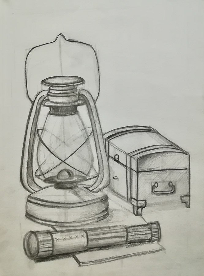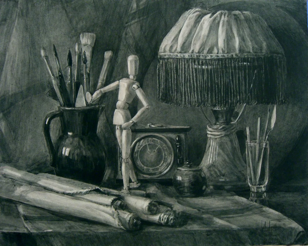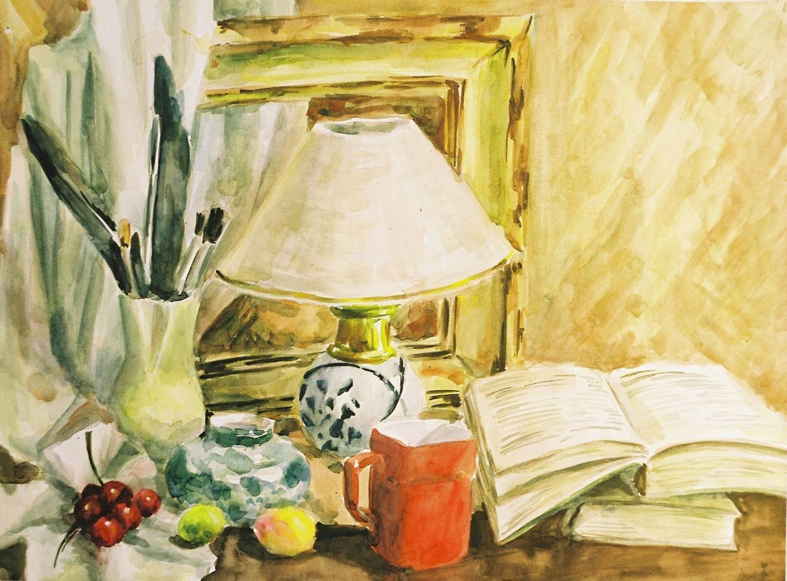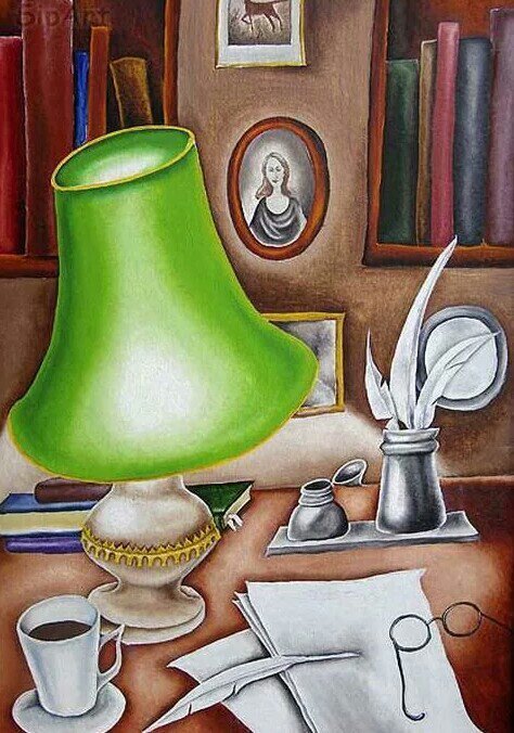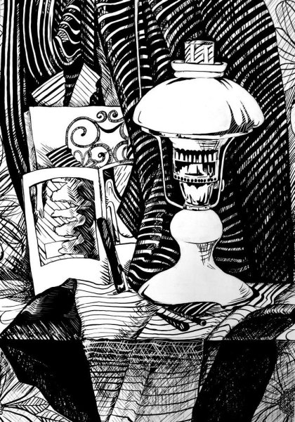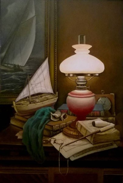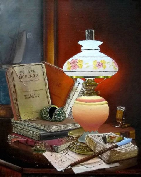 Очаровательный натюрморт с настольной лампой и карандашом создает атмосферу тепла и комфорта. Лампа, излучая мягкий свет, созывает вечерний отдых за чашкой горячего напитка и позволяет расслабиться после долгого рабочего дня. Рядом с ней лежит карандаш, символизирующий творческий потенциал и возможность воплотить свои идеи на бумаге. Этот натюрморт является прекрасным акцентом в интерьере, добавляющим уют и стильное оформление комнаты.