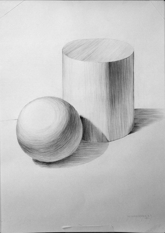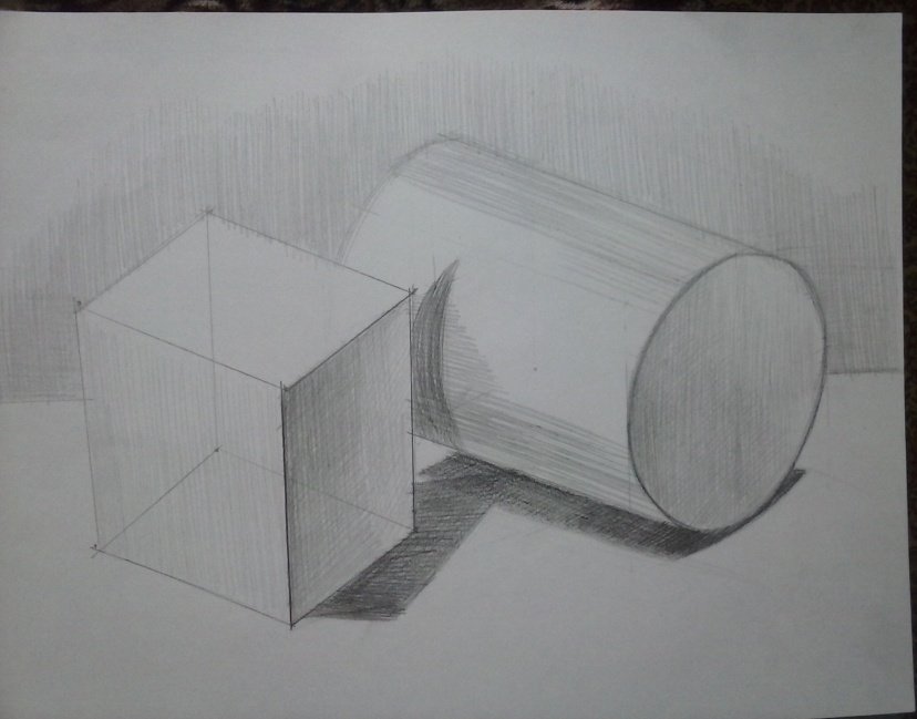 Натюрморт карандашом, включающий в себя куб и цилиндр, является уникальным произведением искусства. В этой композиции каждый элемент играет свою роль, создавая интересное сочетание линий, форм и теней. Карандаш великолепно передает текстуру предметов, добавляя реалистичности и объема. Куб и цилиндр, благодаря своим геометрическим формам, создают чувство стабильности и гармонии. Этот натюрморт карандашом привлекает внимание своей простотой и одновременно сложностью, отражая художественное мастерство и творческий подход автора.