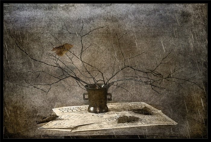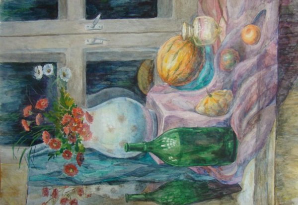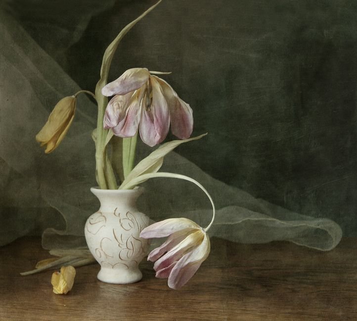 Грустный натюрморт на рисунке захватывает внимание своей эмоциональной глубиной и тонкостью передачи настроения. В центре композиции расположены увядающие цветы с поникшими стеблями, которые символизируют уходящую красоту и преходящую природу жизни. Темные оттенки и мягкие переходы между цветами создают ощущение тоски и печали, вызывая в зрителе смешанные чувства и размышления о времени, прошедшем и ушедшем. Этот грустный натюрморт призывает задуматься о преходящем характере всего сущего и ценности каждого мгновения, заставляя нас остановиться и насладиться прекрасным даже в самых мрачных моментах жизни.
