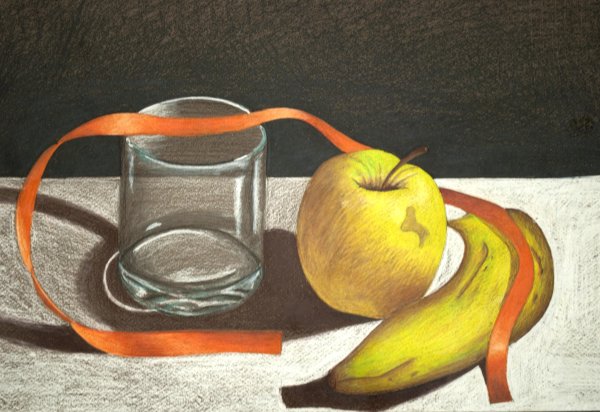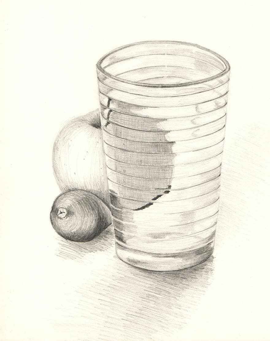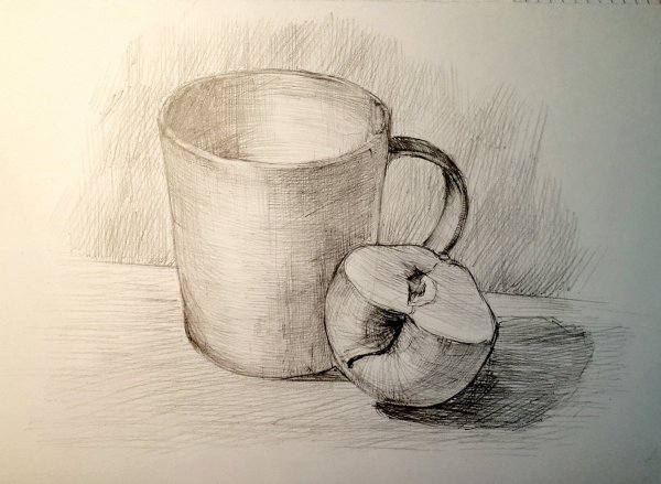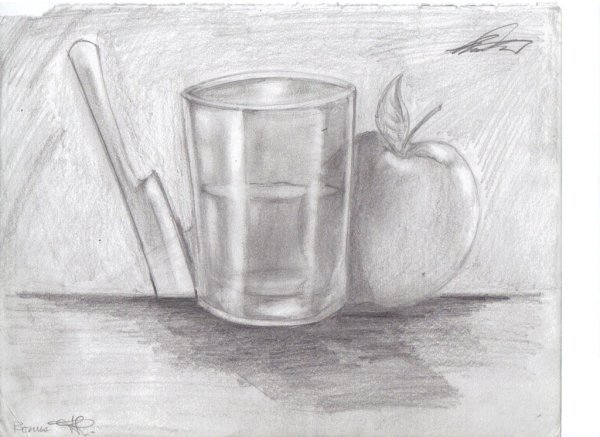 На моем холсте оживает натюрморт, который захватывает взгляд своей простотой и элегантностью. Стакан и яблоко, изображенные с помощью мастерского штриха карандаша, передают гармонию и спокойствие. Каждая деталь, каждая тень и оттенок, созданные искусными руками художника, превращаются в настоящую живую картину. Нежный карандашный рисунок придает этому натюрморту особое очарование, приковывая внимание и оставляя место для фантазии зрителя. Это произведение искусства открывает перед нами простоту и красоту повседневных предметов, напоминая нам о том, что и обычные вещи могут быть воплощением эстетического восприятия.