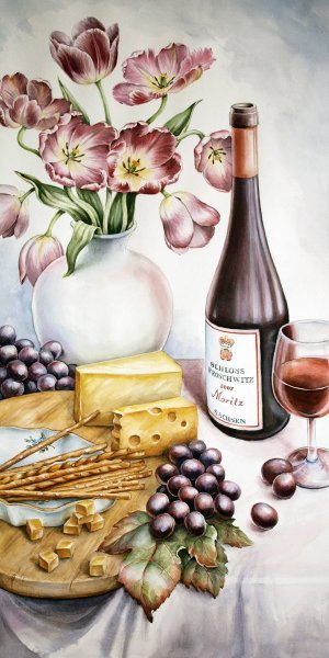 Натюрморт "Вино и виноград карандашом" - это произведение искусства, которое захватывает внимание своей тонкостью и детализацией. Картина изображает бутылку вина, окруженную сочными кластерами винограда, все нарисованное мастерски карандашом. Каждая линия и тень созданы с особым вниманием к деталям, передавая реалистичность и объемность объектов на полотне. Оттенки винного цвета и яркость винограда придают картины живую энергию и вызывают ощущение аппетита. Это произведение искусства станет прекрасным украшением для интерьера любого помещения и подарит неповторимую атмосферу винной тематики.