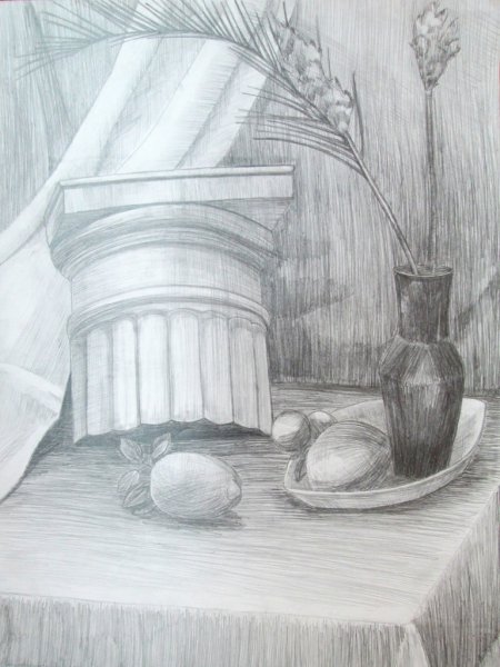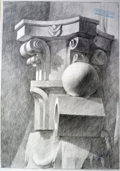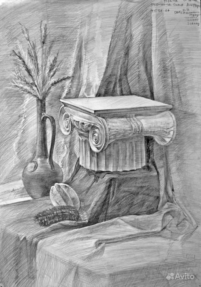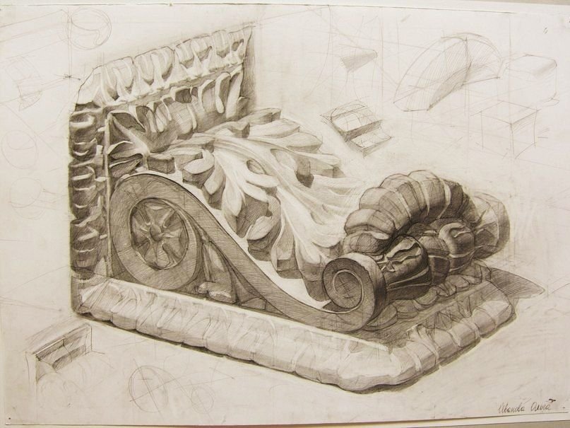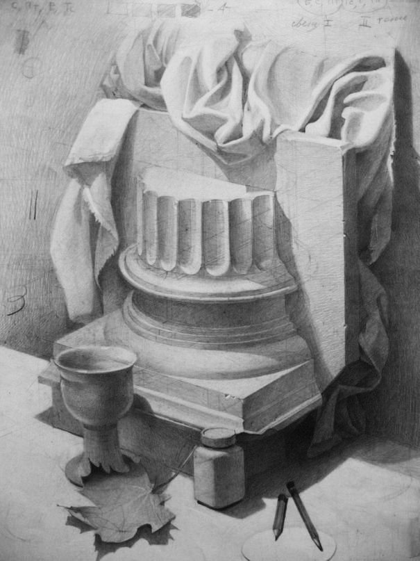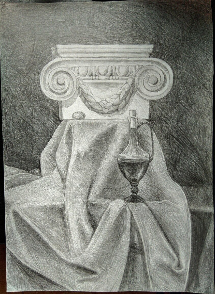 Натюрморт с капителью - это рисунок, который изображает размещенные на столе или другой подобной поверхности предметы вокруг капители. Капитель - это элемент архитектурного оформления, располагающийся в верхней части колонны или пилястры и служащий для поддержки архитектурных элементов, таких как арка или свод. В таком натюрморте капитель может быть центральным или фоновым объектом, который создает интересную композицию со всеми окружающими его предметами. Рисунок такого натюрморта может быть выполнен в различных техниках, от масляных красок до акварели или графики, и каждый художник придает ему свой индивидуальный стиль и эмоциональный оттенок. Натюрморт с капителью является прекрасным способом запечатлеть красоту и эстетику архитектурных деталей, объединенных с живописными предметами, и создать уникальное произведение искусства.