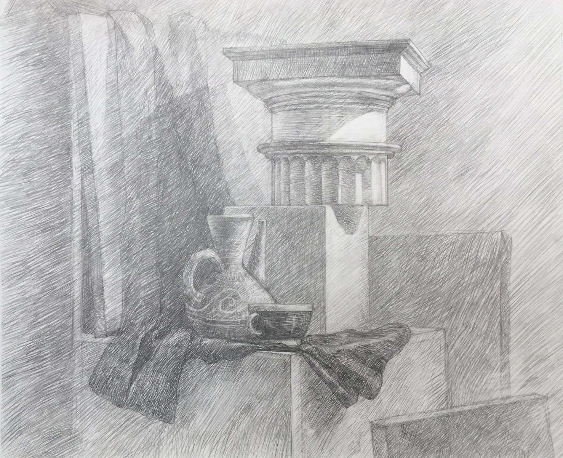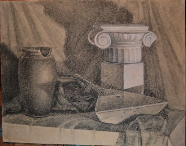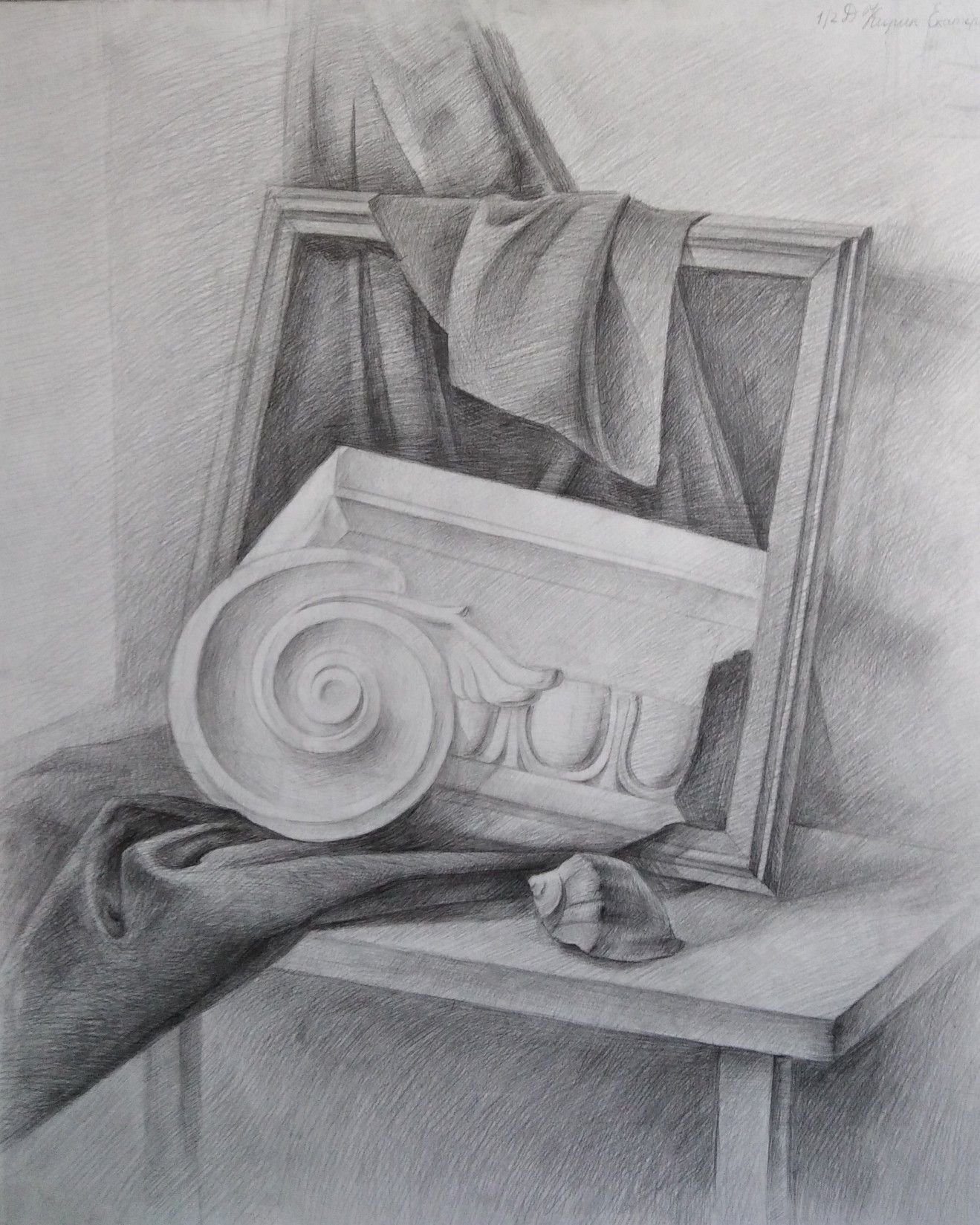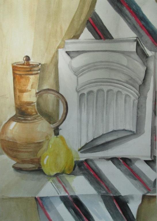 Натюрморт с капителью - это рисунок, который изображает размещенные на столе или другой подобной поверхности предметы вокруг капители. Капитель - это элемент архитектурного оформления, располагающийся в верхней части колонны или пилястры и служащий для поддержки архитектурных элементов, таких как арка или свод. В таком натюрморте капитель может быть центральным или фоновым объектом, который создает интересную композицию со всеми окружающими его предметами. Рисунок такого натюрморта может быть выполнен в различных техниках, от масляных красок до акварели или графики, и каждый художник придает ему свой индивидуальный стиль и эмоциональный оттенок. Натюрморт с капителью является прекрасным способом запечатлеть красоту и эстетику архитектурных деталей, объединенных с живописными предметами, и создать уникальное произведение искусства.