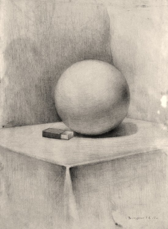Натюрморт с гипсовым шаром и карандашом - это изображение, которое захватывает взгляд своей элегантностью и простотой. Гипсовый шар, идеально округлый и белоснежный, становится центральным объектом композиции, приковывая к себе внимание. Рядом с ним лежит карандаш, символизирующий творческий процесс и идеи, намекая на возможность перевоплощения и преобразования. Вместе они создают особую атмосферу тишины и спокойствия, приглашая зрителя в мир рефлексии и вдохновения. Этот натюрморт идеально подойдет для интерьера, добавляя нотку художественности и эстетики в любое помещение.