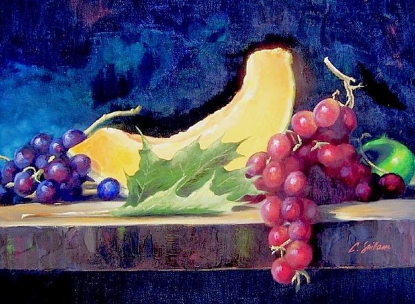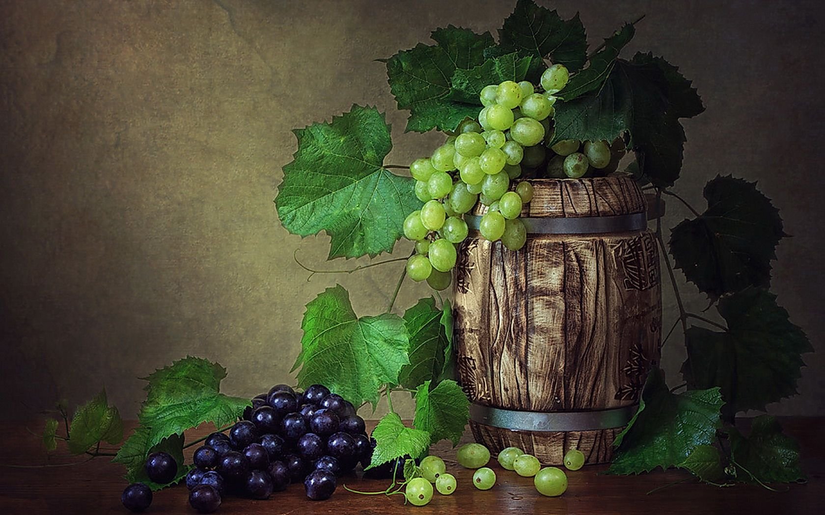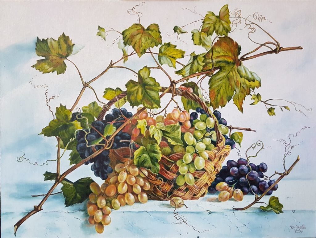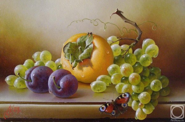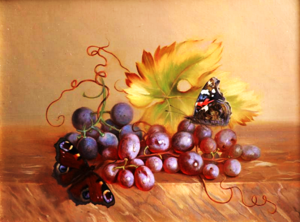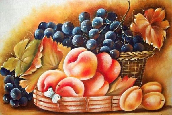 Натюрморт с виноградом - это живописный рисунок, который воплощает красоту и изящество этого ягодного плода. В центре композиции расположены сочные, блестящие грозди винограда разных оттенков: от светло-зеленых до темно-фиолетовых. Художник смог передать каждый деталь ягоды - ее форму, текстуру и блеск на поверхности. Задний план натюрморта оформлен тонкими листьями виноградной лозы, придающими работе естественность и жизнерадостность. Комбинация ярких цветов и мастерство художника создают атмосферу изобилия и праздника. Этот рисунок подойдет для украшения интерьера кухни, столовой или винной комнаты, добавляя в них изысканности и элегантности.