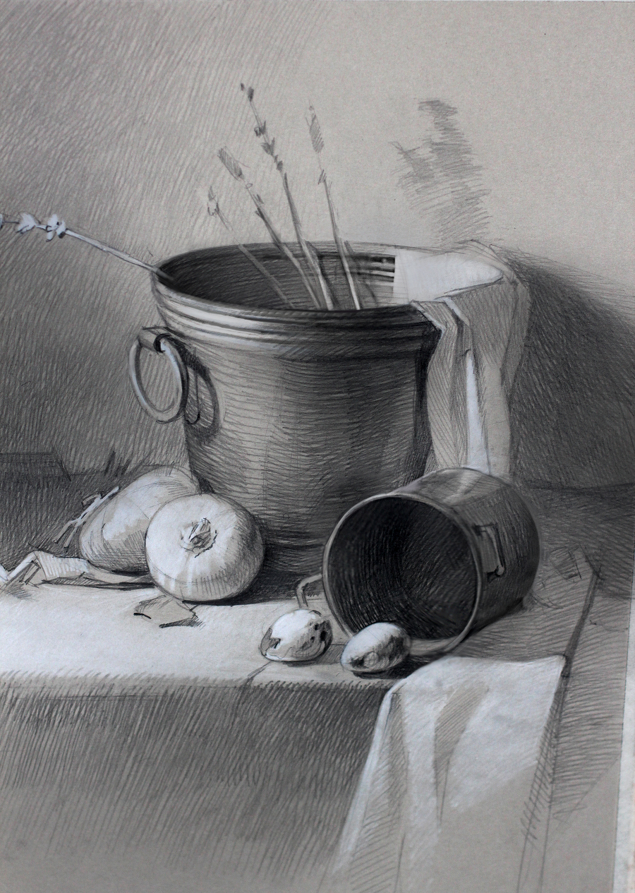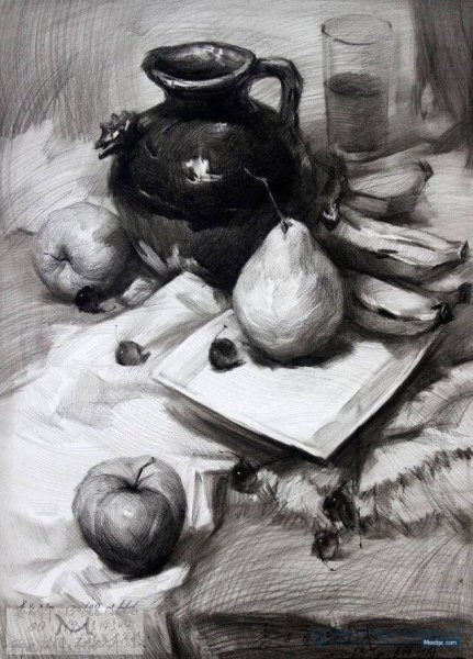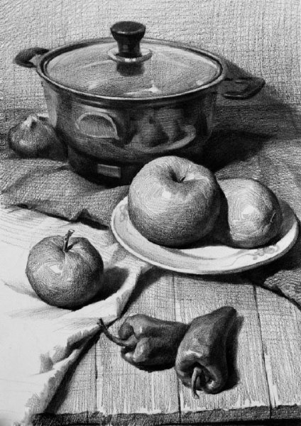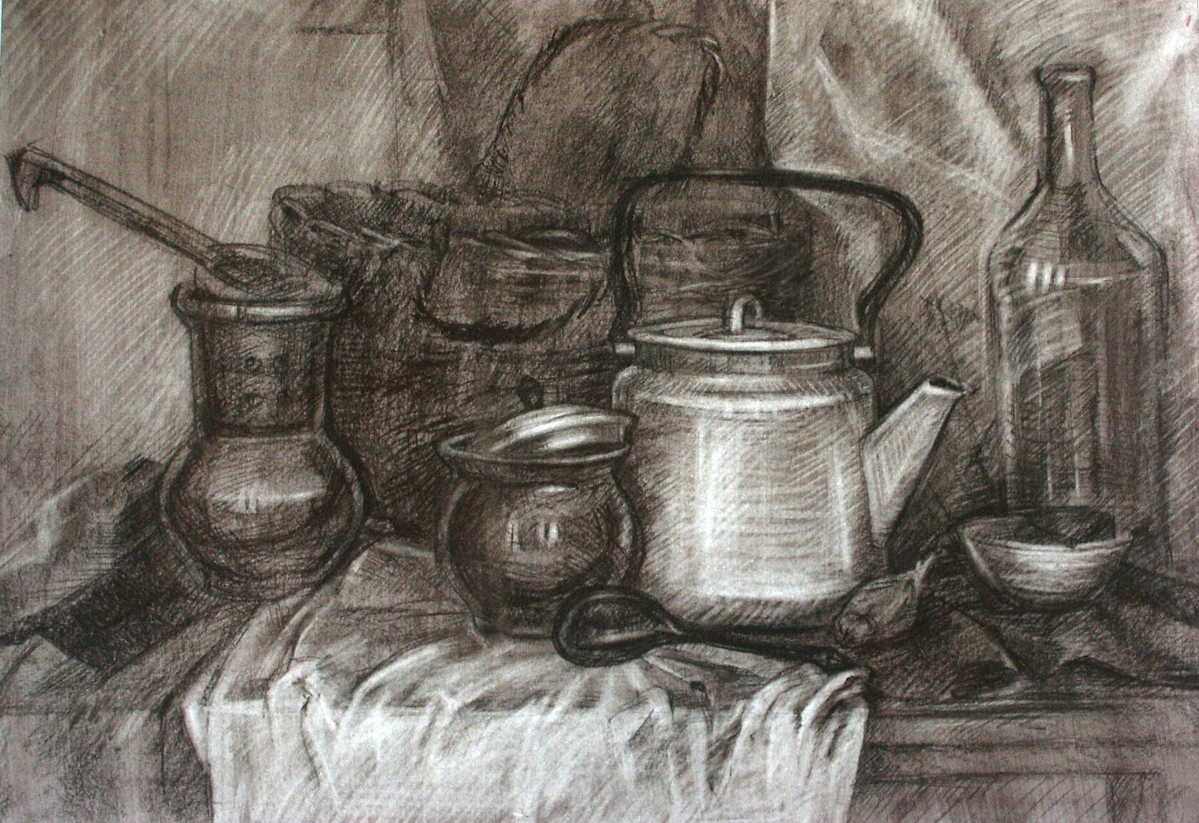 Академический рисунок натюрморта углем - это техника изображения, которая позволяет передать глубину и объемность объектов на бумаге. Черно-белые тона угля создают особую атмосферу и придают работе особый характер. В академическом стиле рисунка, каждая деталь важна и имеет свое значение. Отображение предметов, таких как фрукты, цветы или посуда, требует точности и наблюдательности. Академический рисунок натюрморта углем может быть использован для декорации интерьера, а также применяется в художественных проектах и выставках. Эта техника позволяет передать эстетическую красоту объектов и создать уникальную композицию.