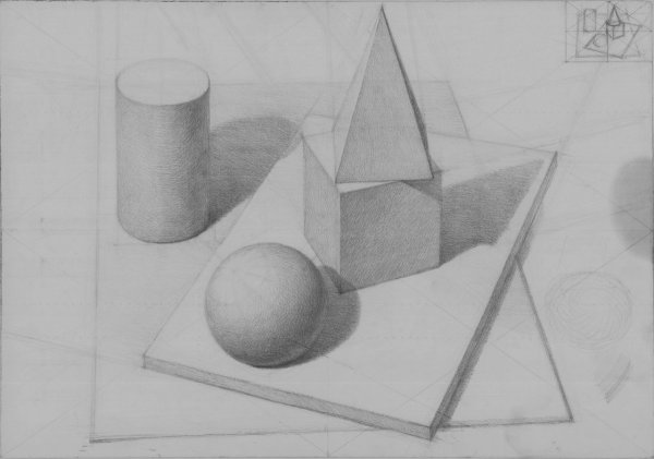 Академический рисунок натюрморта из геометрических тел - это произведение искусства, которое отражает гармонию и симметрию форм в объективном стиле. В этом рисунке художник использует геометрические фигуры, такие как кубы, сферы, цилиндры и конусы, чтобы создать композицию, которая поражает своей точностью и строгостью. Через тщательно продуманные пропорции и аккуратные линии, художник передает четкость и ясность каждой формы, придавая работе ощущение структуры и стабильности. Этот вид рисунка позволяет зрителю увидеть красоту геометрии и насладиться ее цельностью и эстетикой. Академический рисунок натюрморта из геометрических тел - это великолепное сочетание точности и утонченности, которое приковывает взгляд и вызывает чувство гармонии в области искусства.