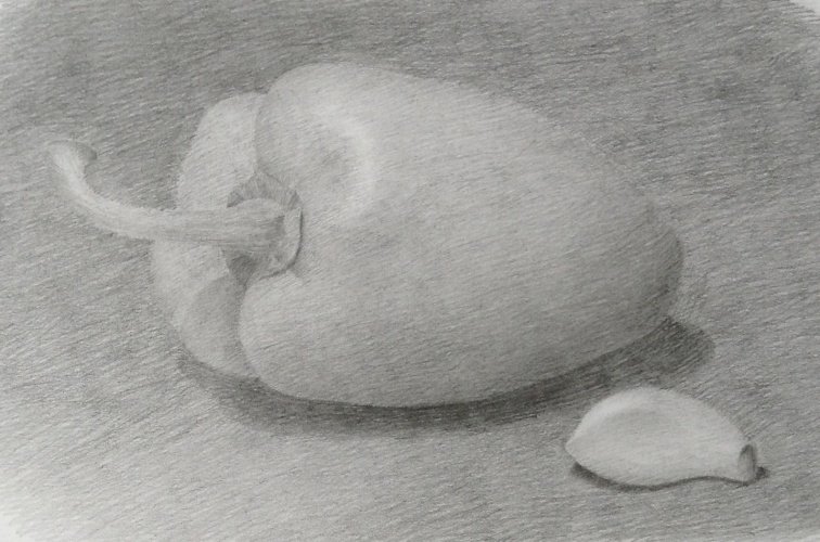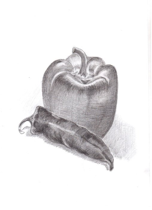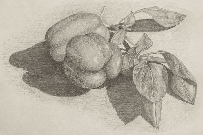 Наш натюрморт "Перцы карандашом" представляет собой потрясающее сочетание выразительности и детализации. В этой работе художник воплощает на бумаге реалистичные изображения трех перцев разных цветов - оранжевого, желтого и зеленого, придавая им особую живость и яркость. Каждый перец прорисован с удивительной точностью и тонкостью, словно созданный мастером аккуратными штрихами карандаша. Благодаря искусному использованию светотени и оттенков, образы перцев обретают объемность и глубину, позволяя зрителю почувствовать текстуру и форму каждого овоща. Этот натюрморт является прекрасным примером реализма и виртуозного мастерства художника, который с легкостью передает красоту и неповторимость даже в таких простых предметах, как перцы.