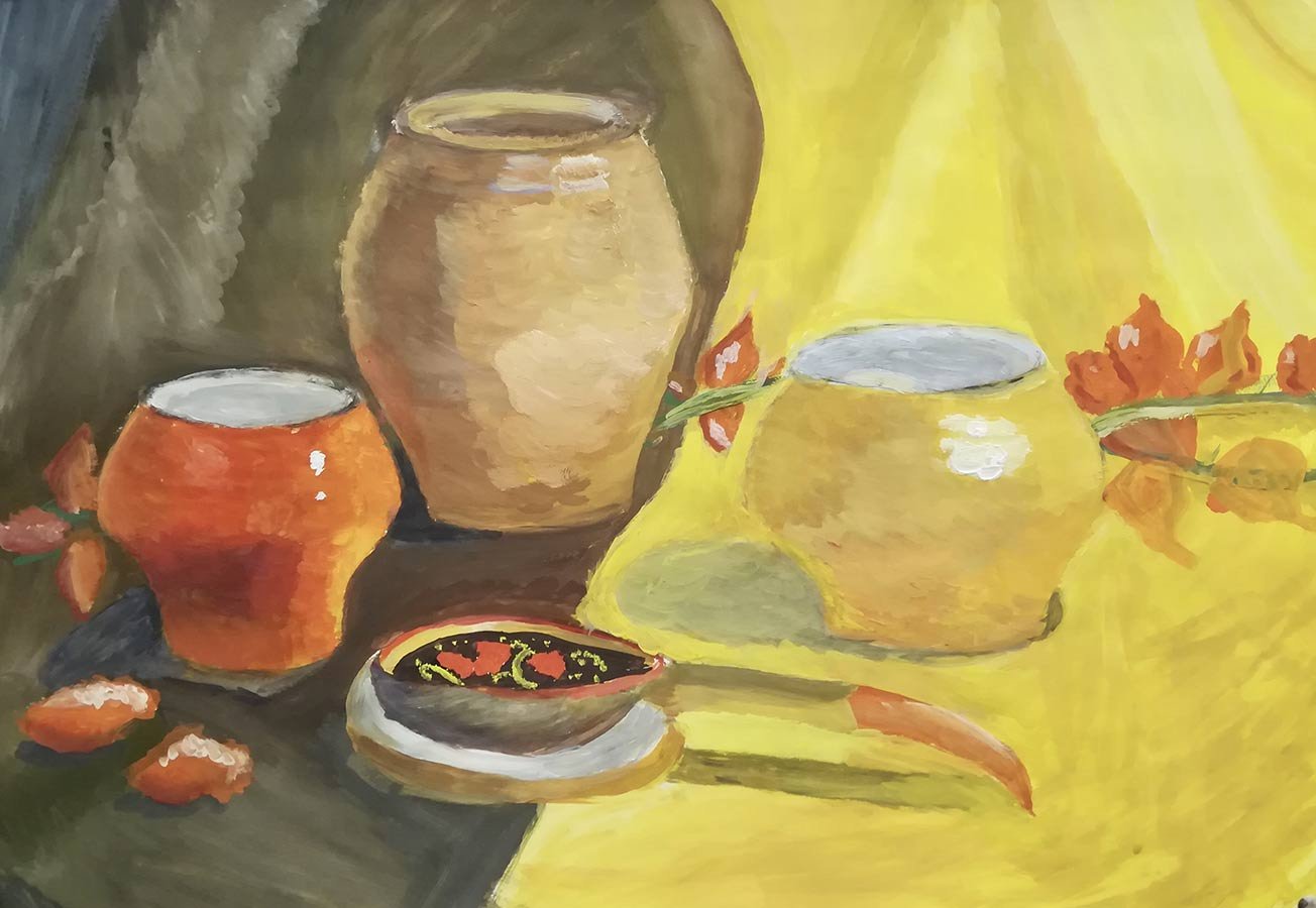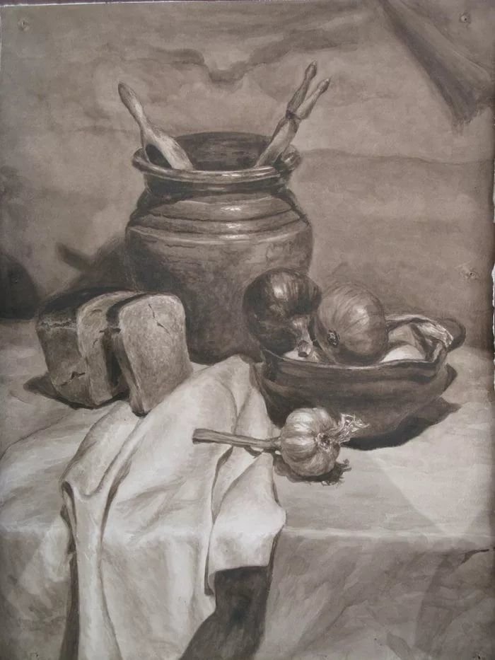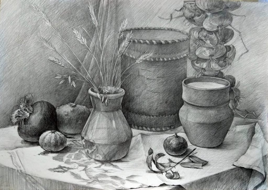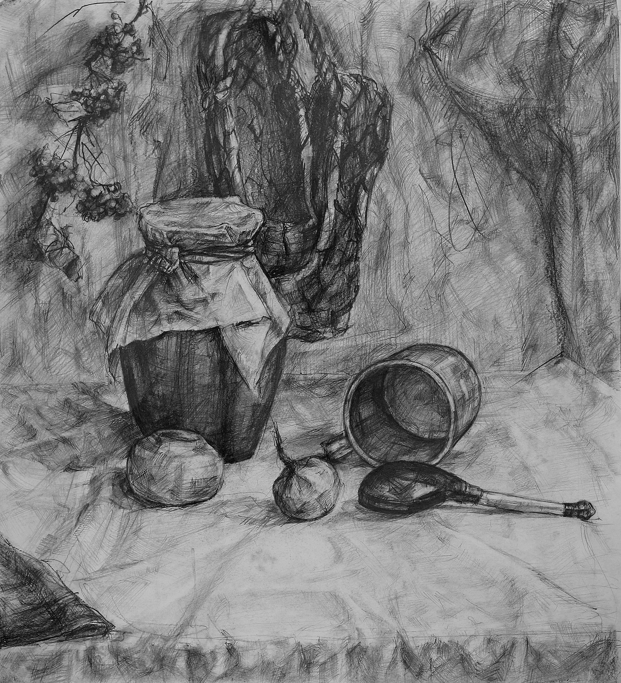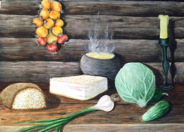 Рисунок натюрморт "Деревня" - это произведение искусства, которое захватывает красоту и простоту жизни в сельской местности. На этом рисунке можно увидеть изображение различных элементов, характерных для деревенской обстановки. Возможно, на фоне просторных полей и зеленых пастбищ, есть изображение традиционного деревенского домика с дымящимся комином или колодцем, окруженное цветущими садами и лужайками. Возможно, в центре рисунка изображена корзина с свежими овощами и фруктами, напоминающая о богатстве сельской местности. Рисунок натюрморт "Деревня" приносит чувство спокойствия и гармонии, отображая традиции и простоту жизни в деревне.
