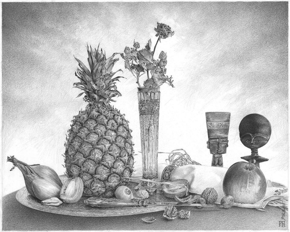 Ананас натюрморт карандашом - это уникальная и оригинальная работа искусства, которая захватывает взгляд своей детализацией и тонкой проработкой. Каждая линия, каждая тень создают реалистичный образ ананаса, воплощая его форму и текстуру на бумаге. Гармоничное сочетание мягких оттенков, глубоких переходов и фактурных деталей придают натюрморту особую элегантность и привлекательность. Это произведение искусства позволяет зрителю полностью погрузиться в мир карандашного рисунка и насладиться его неповторимым очарованием. Если вы ценитель прекрасного и хотите добавить нотку изысканности и оригинальности в свой интерьер, то ананас натюрморт карандашом станет идеальным выбором для вас.