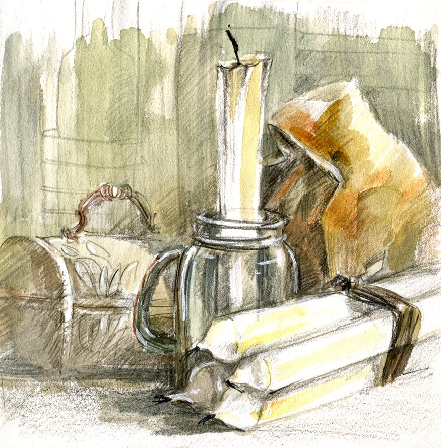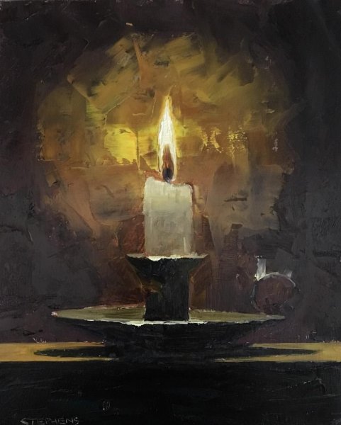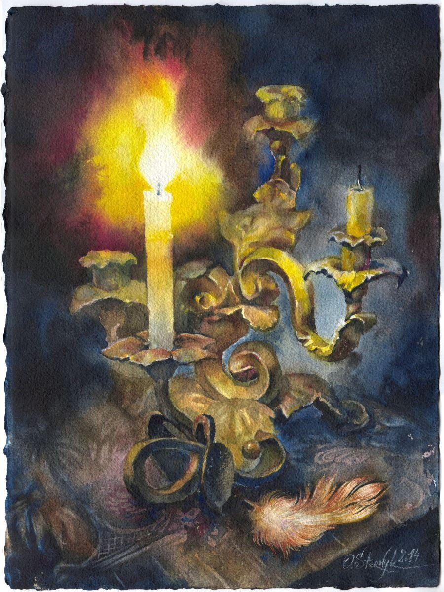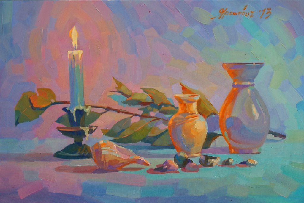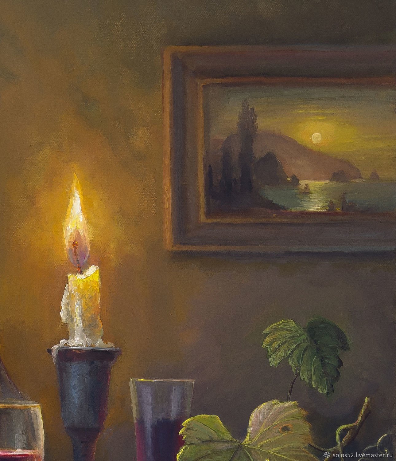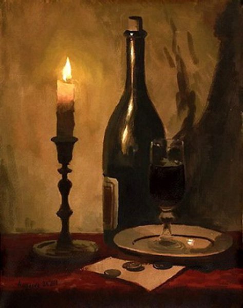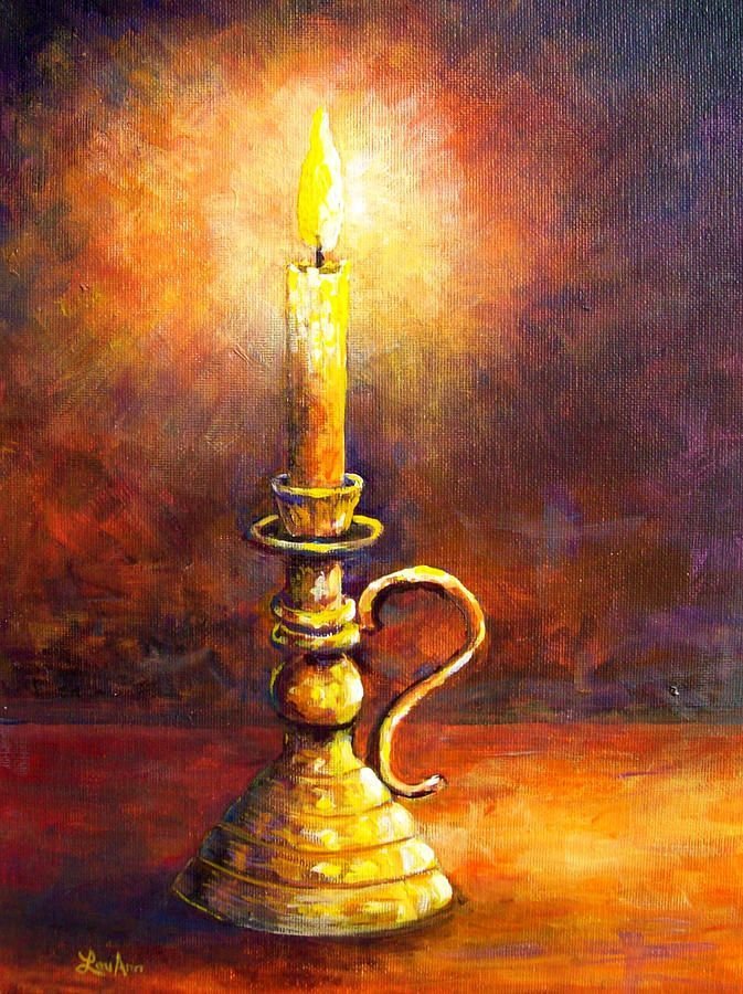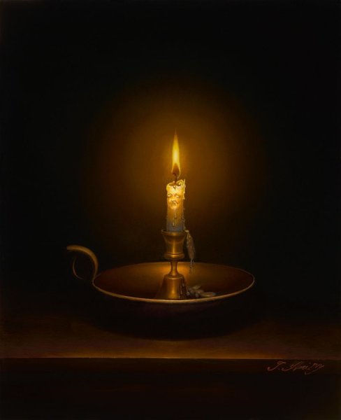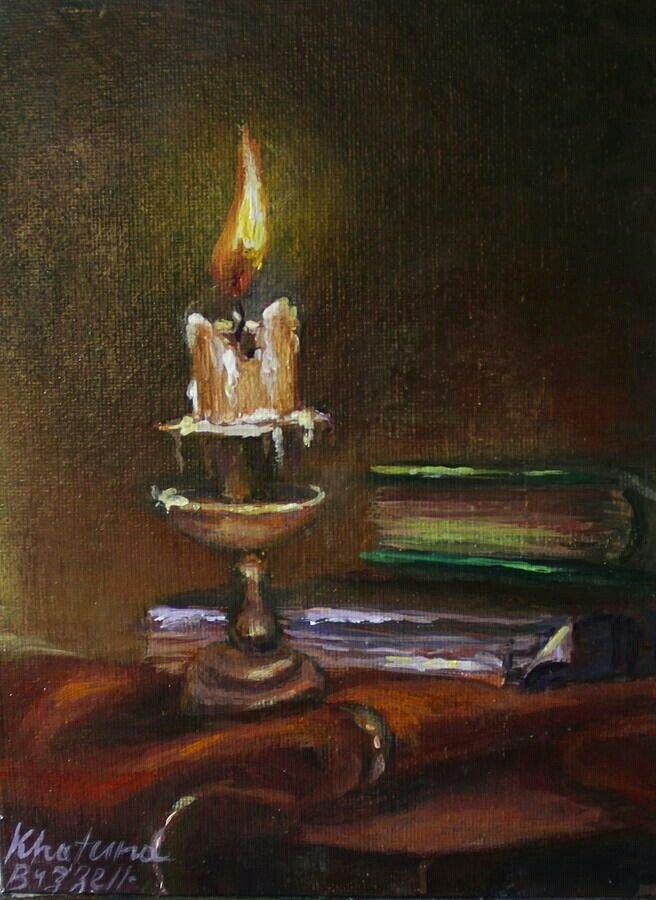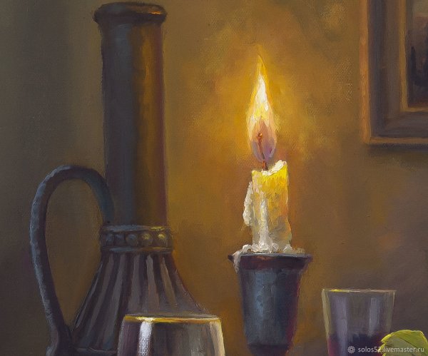 Великолепный натюрморт со свечой - это уникальный рисунок, который захватывает взгляд и переносит нас в атмосферу покоя и умиротворения. На этой композиции свеча становится центральным элементом, излучая тепло и мягкое свечение. Окружающие ее предметы - ваза с цветами, фрукты или другие аксессуары - добавляют глубину и объемность картины. Художник проявляет мастерство в передаче деталей и текстур, создавая ощущение реальности и природной красоты. Этот натюрморт прекрасно впишется в интерьер любого помещения и станет настоящим украшением вашего пространства.