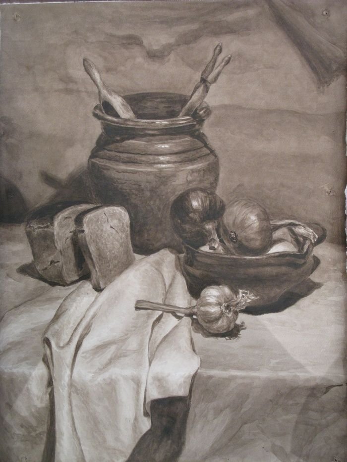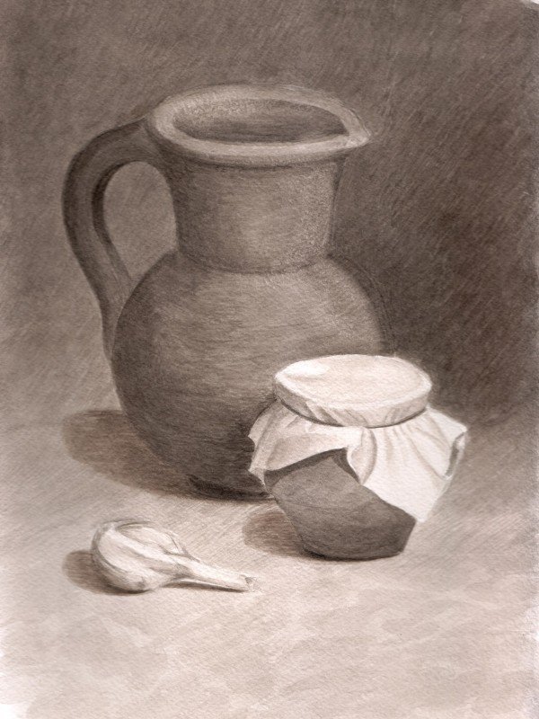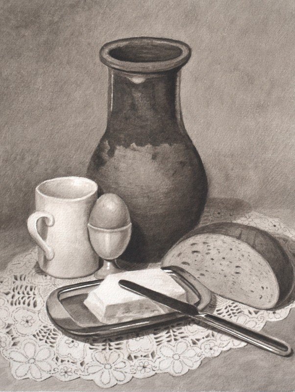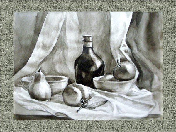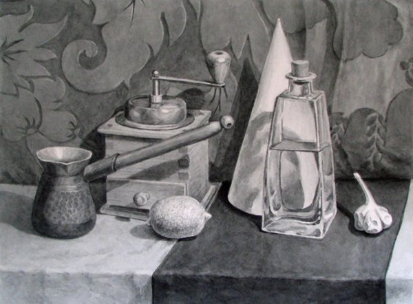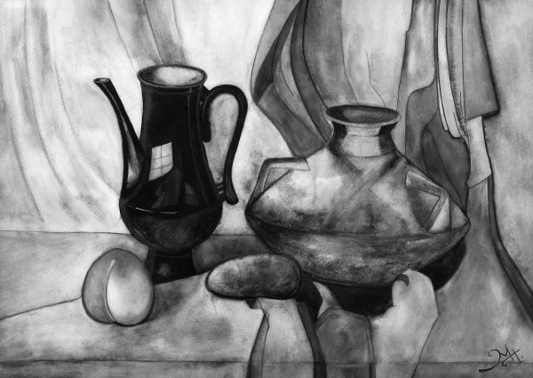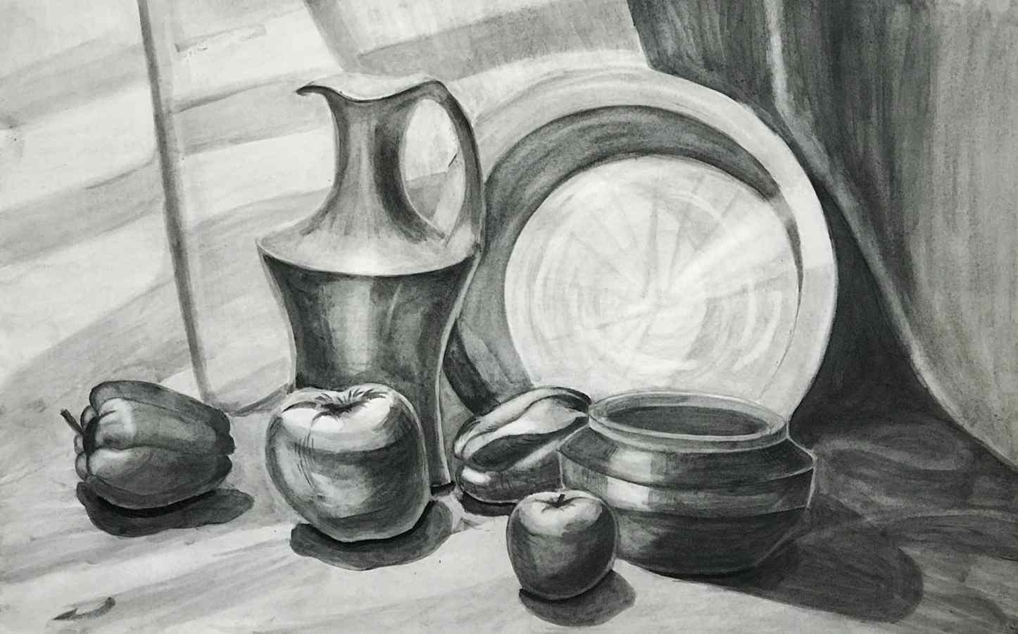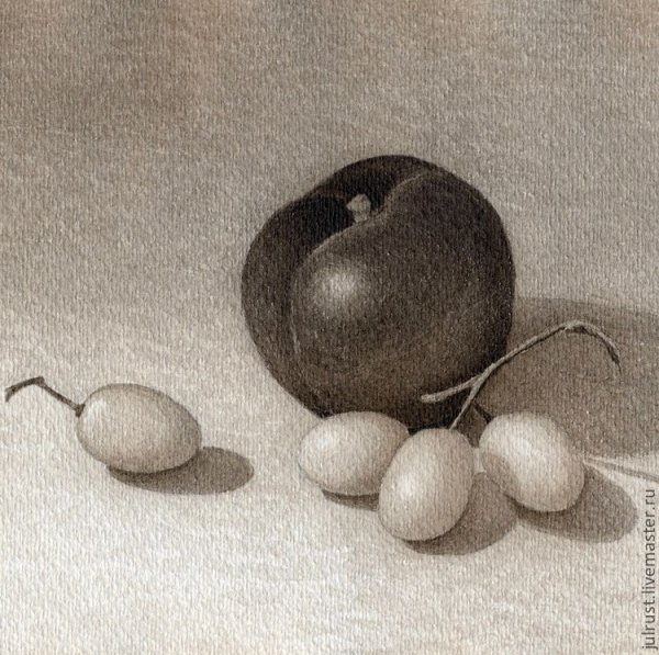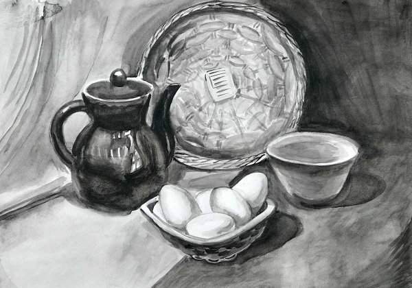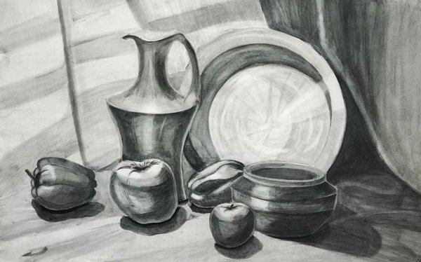 Гризайль натюрморт карандашом - это особый вид художественной техники, в которой используется карандаш для создания монотонного, графичного изображения. В данном случае, художник использует карандаш с графитовым сердечником, чтобы создать эффект пастельных оттенков и мягкого перехода цветов. Гризайль натюрморты обычно представляют собой композиции различных объектов, таких как фрукты, цветы, посуда или другие предметы быта. Этот стиль рисунка часто ассоциируется с классическим и реалистичным подходом к изображению, что придает работам особую глубину и выразительность. Такие натюрморты с карандашом обладают своеобразной тонкостью и детализацией, позволяя передать множество нюансов форм и теней. Они являются прекрасным выражением творческого потенциала художника и способны восхищать зрителя своей точностью и реалистичностью.