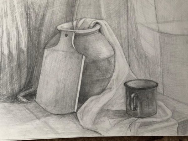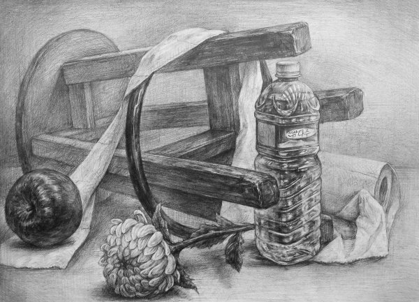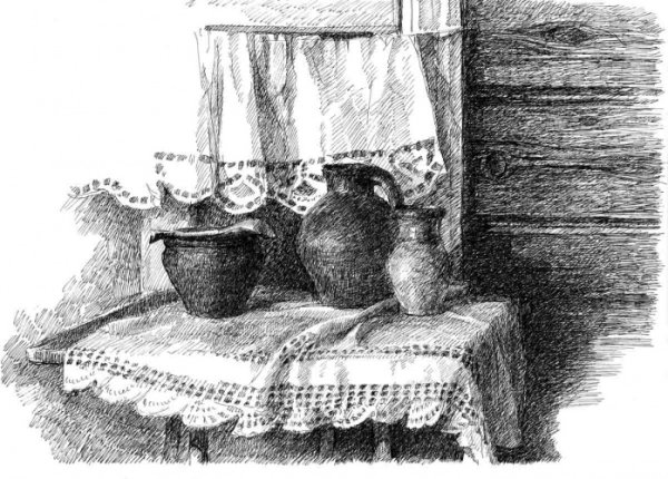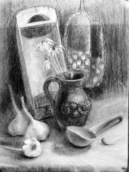 Деревенский натюрморт, выполненный карандашом, воплощает в себе простоту и естественность. В этом рисунке можно увидеть изображение разнообразных предметов, характерных для жизни в деревне - корзину с овощами и фруктами, глиняную кружку с молоком, свежие цветы из сада. Каждая деталь является тщательно проработанной, передающей текстуру и объем объектов. Такой натюрморт создает атмосферу уюта и спокойствия, позволяя зрителю окунуться в атмосферу деревенской жизни и насладиться простотой и красотой каждого элемента. Этот рисунок станет прекрасным украшением интерьера, добавляя естественности и природной гармонии в любое помещение.